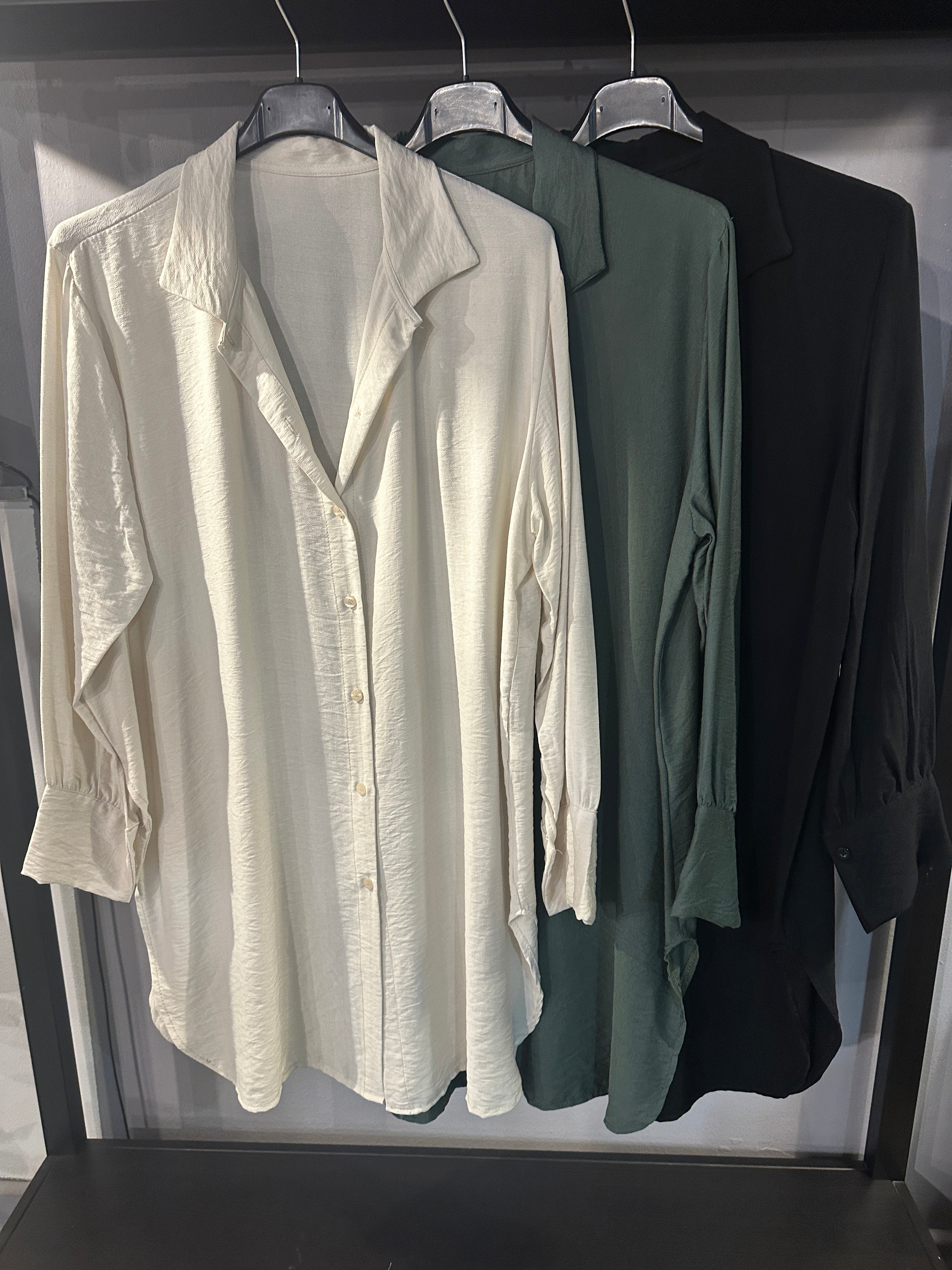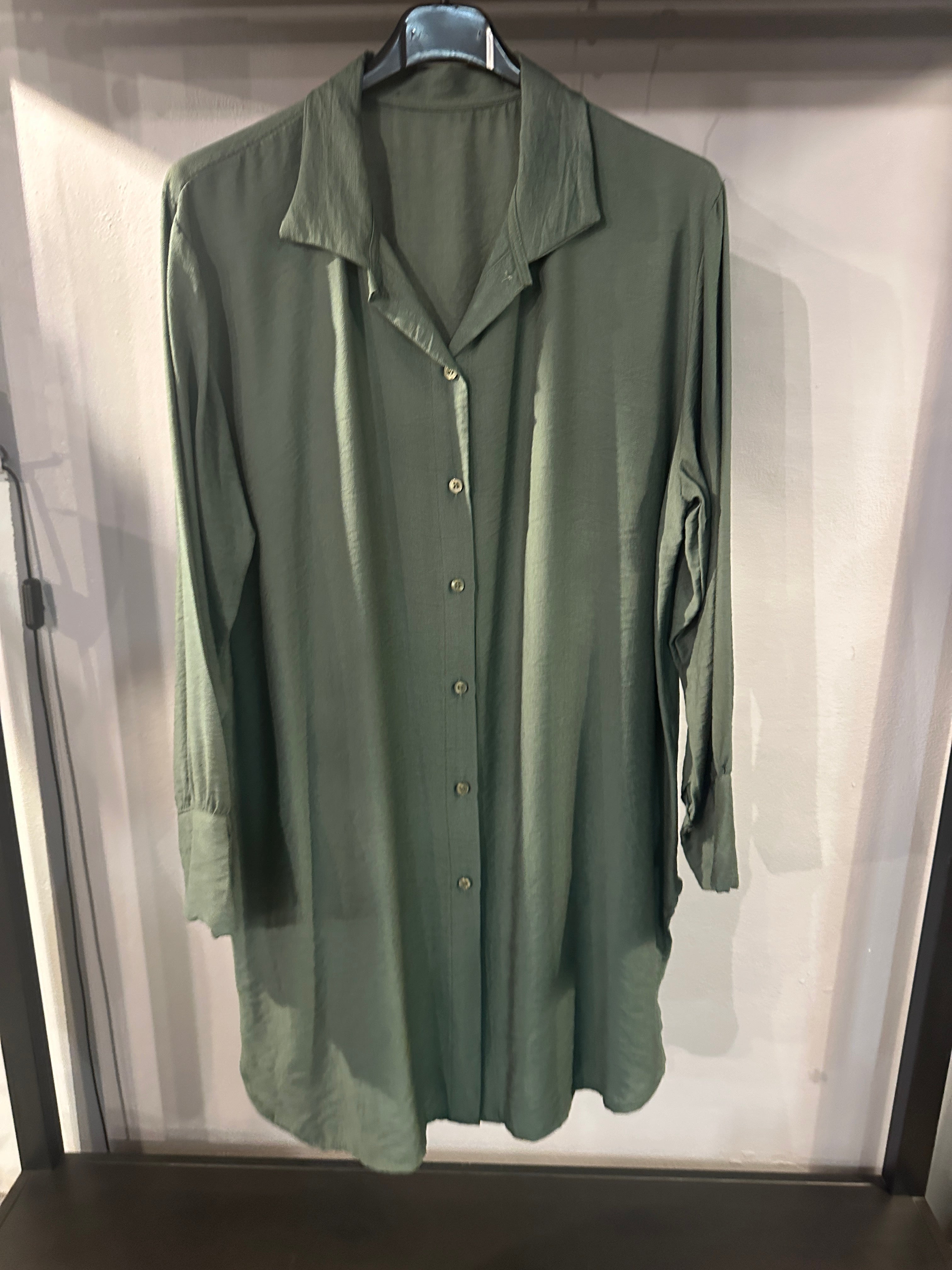 Descrizione: Abito Donna in Viscosa stropicciata. Collo a punta, Maniche lunghe con polsino. Chiusura con bottoni frontali