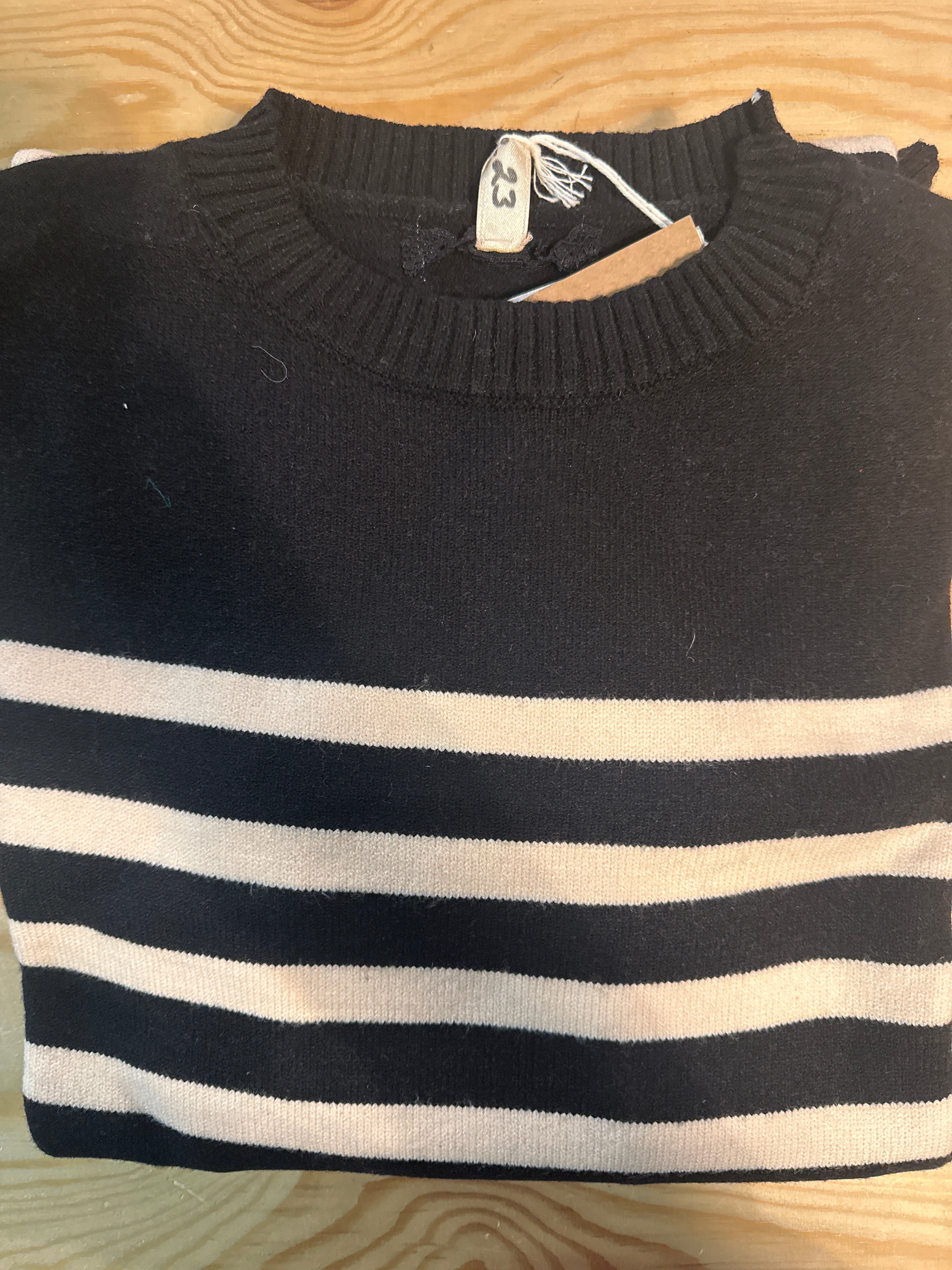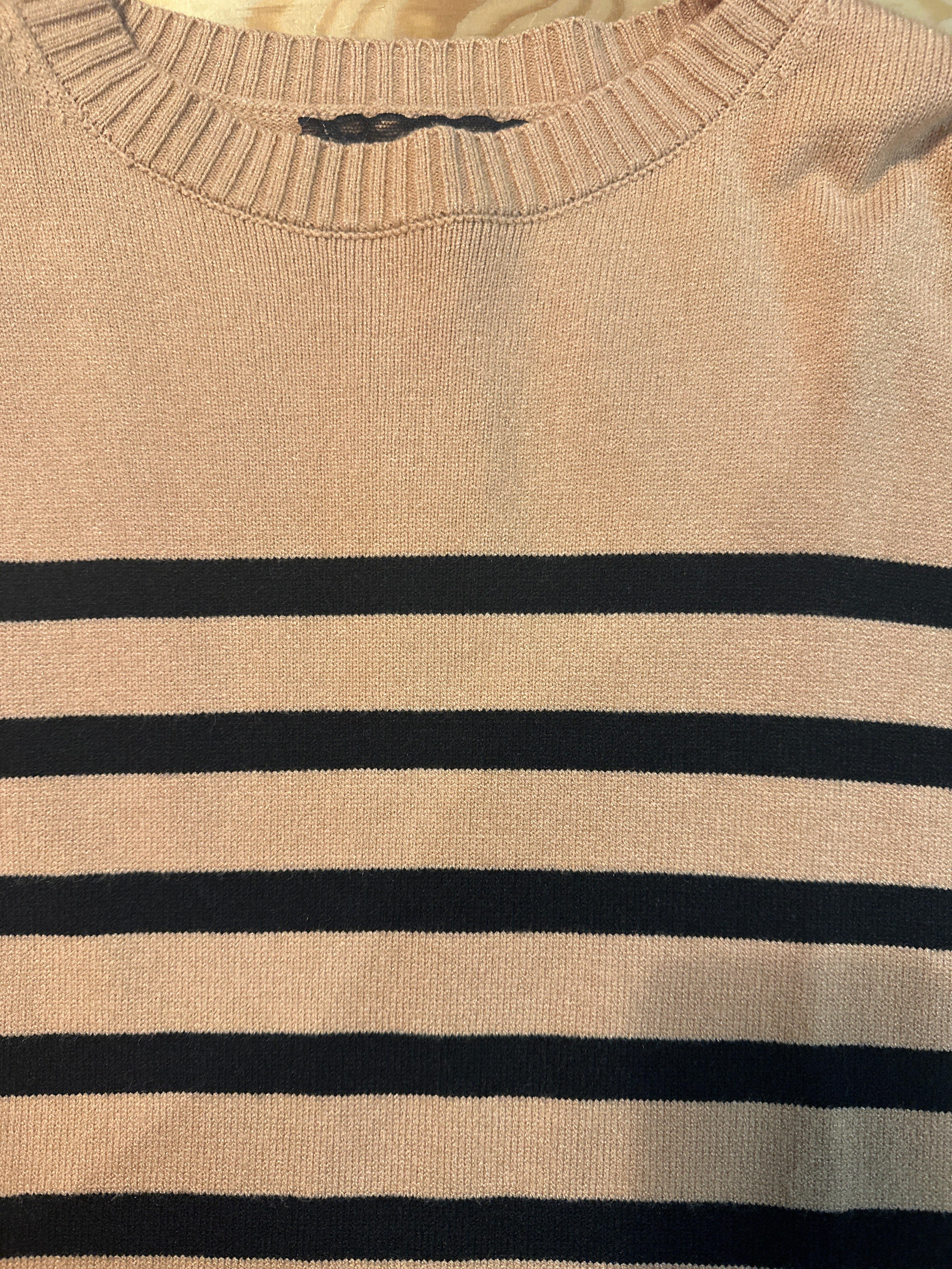 Descrizione: Abito in maglia a righe. Scollo rotondo. Spalle calate e maniche lunghe.