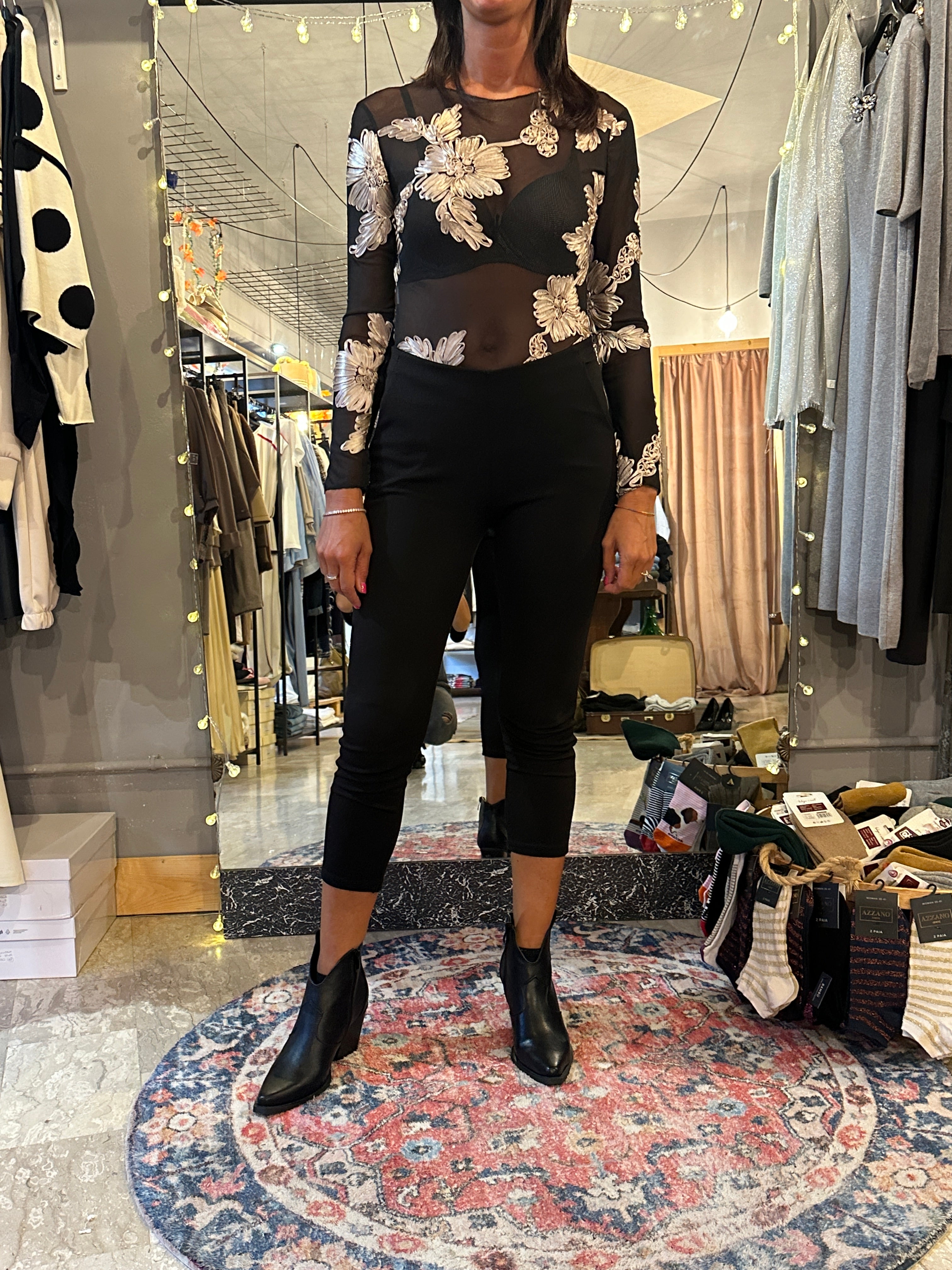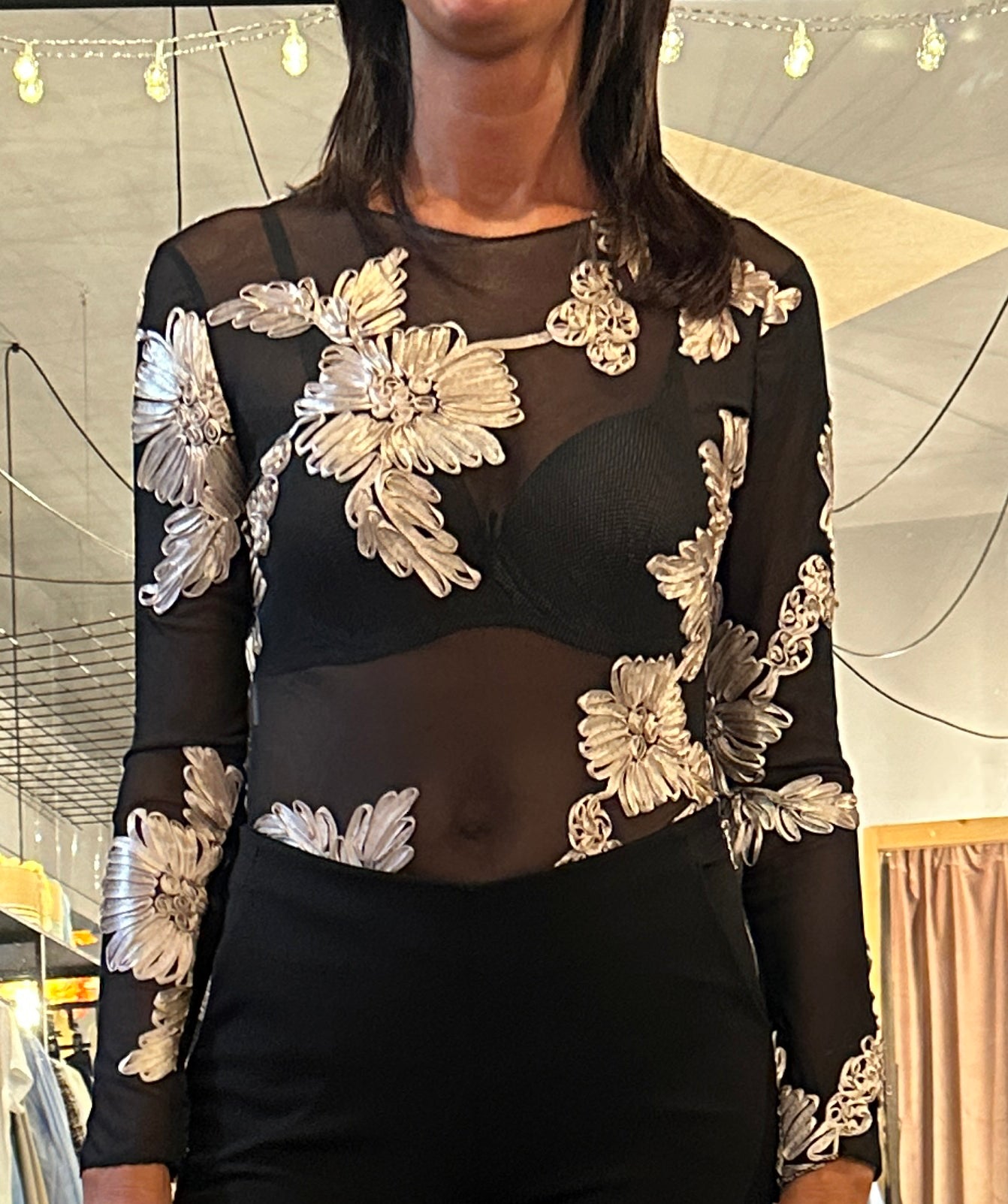 Descrizione: Body in tulle ricamato. Girocollo, Manica lunga.