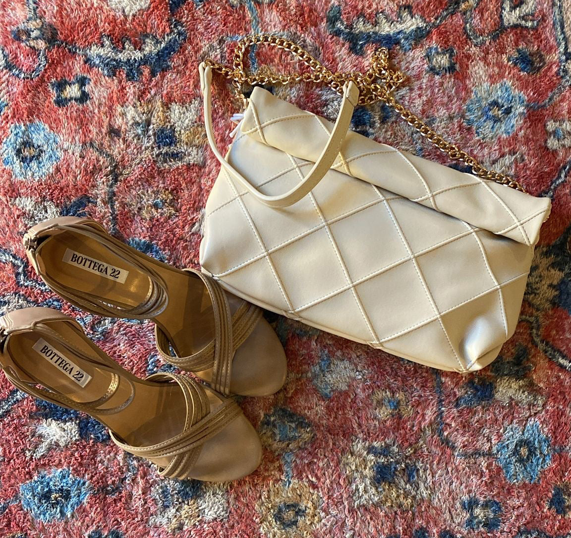 Descrizione: Busta in Eco Pelle trapuntata a rombi. Interno foderato, tracolla in catena con ecopelle per la spalla.