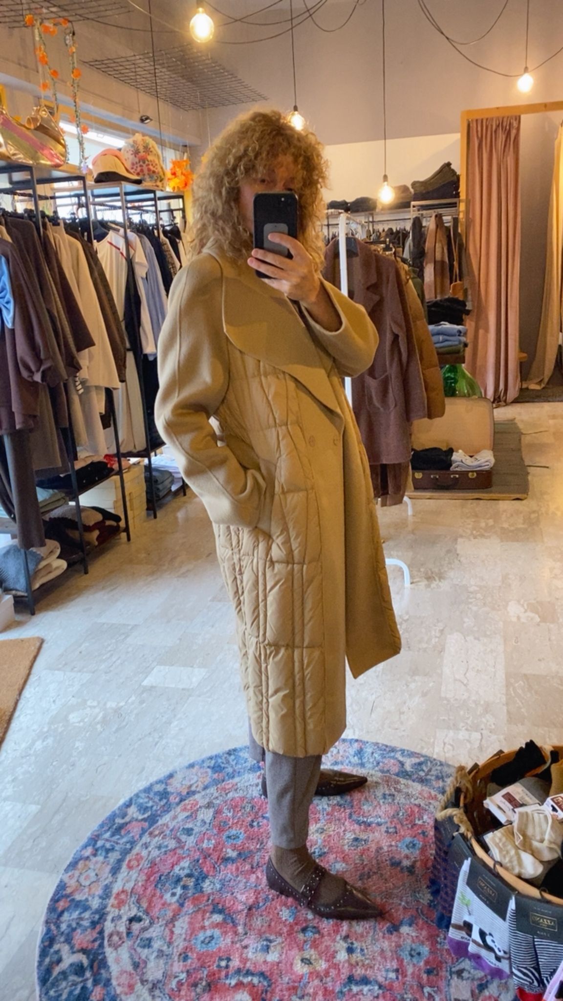 Descrizione: Cappotto Lungo Donna in Panno e Nylon CUCITO A MANO. Collo Revers. Tasche a filetto. Chiusura frontale con cintura. Spalle raglan, maniche lunghe.