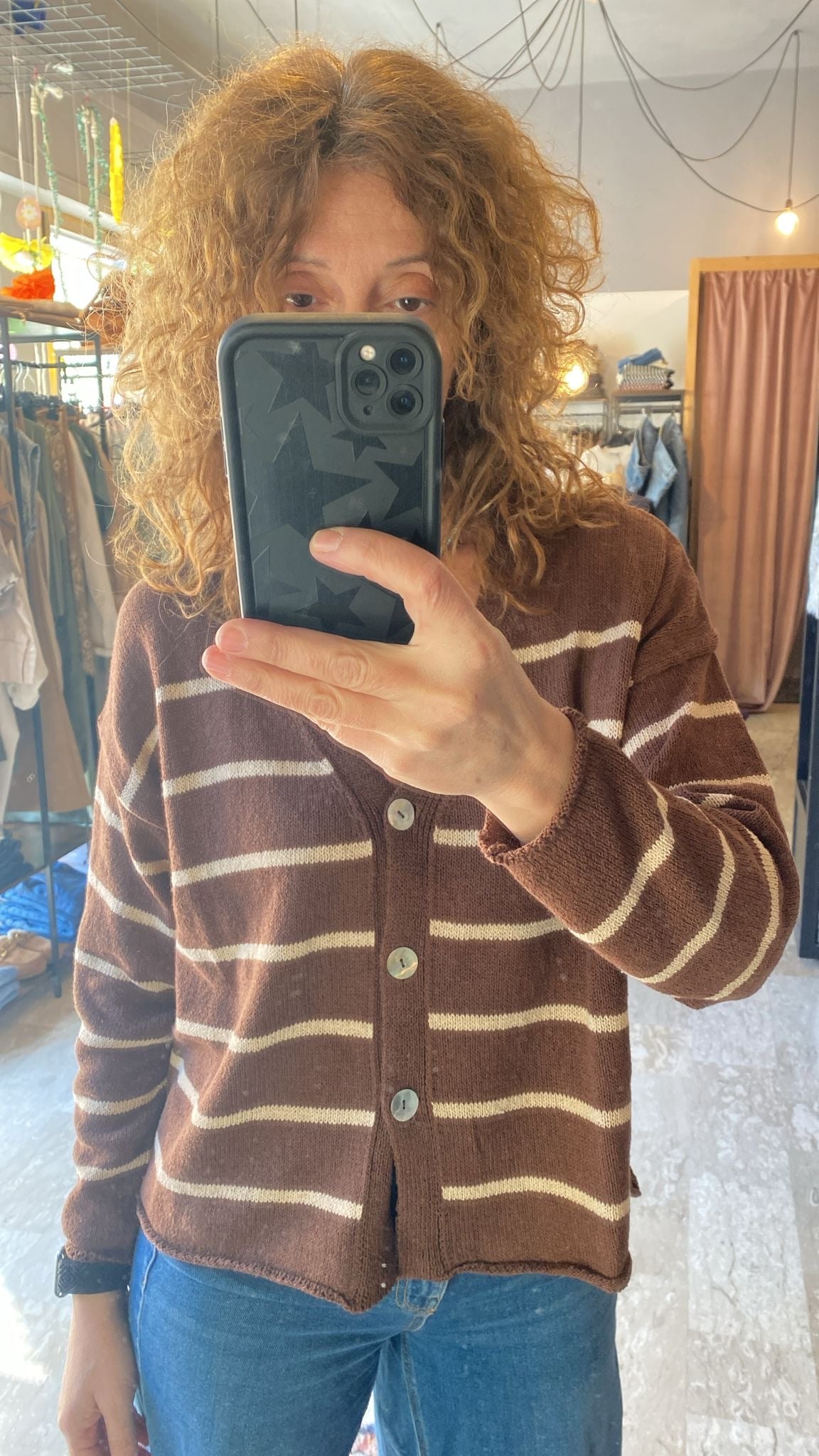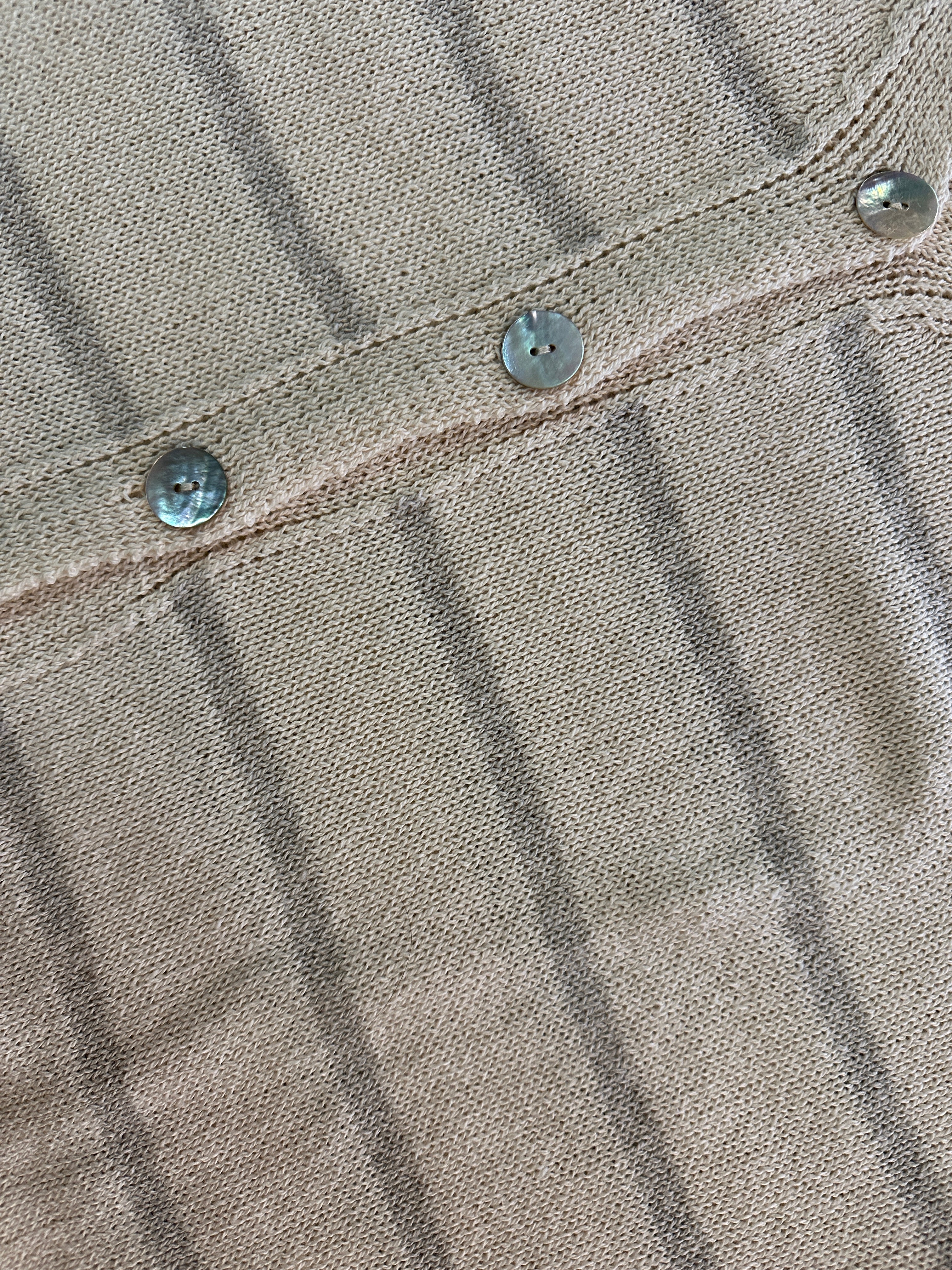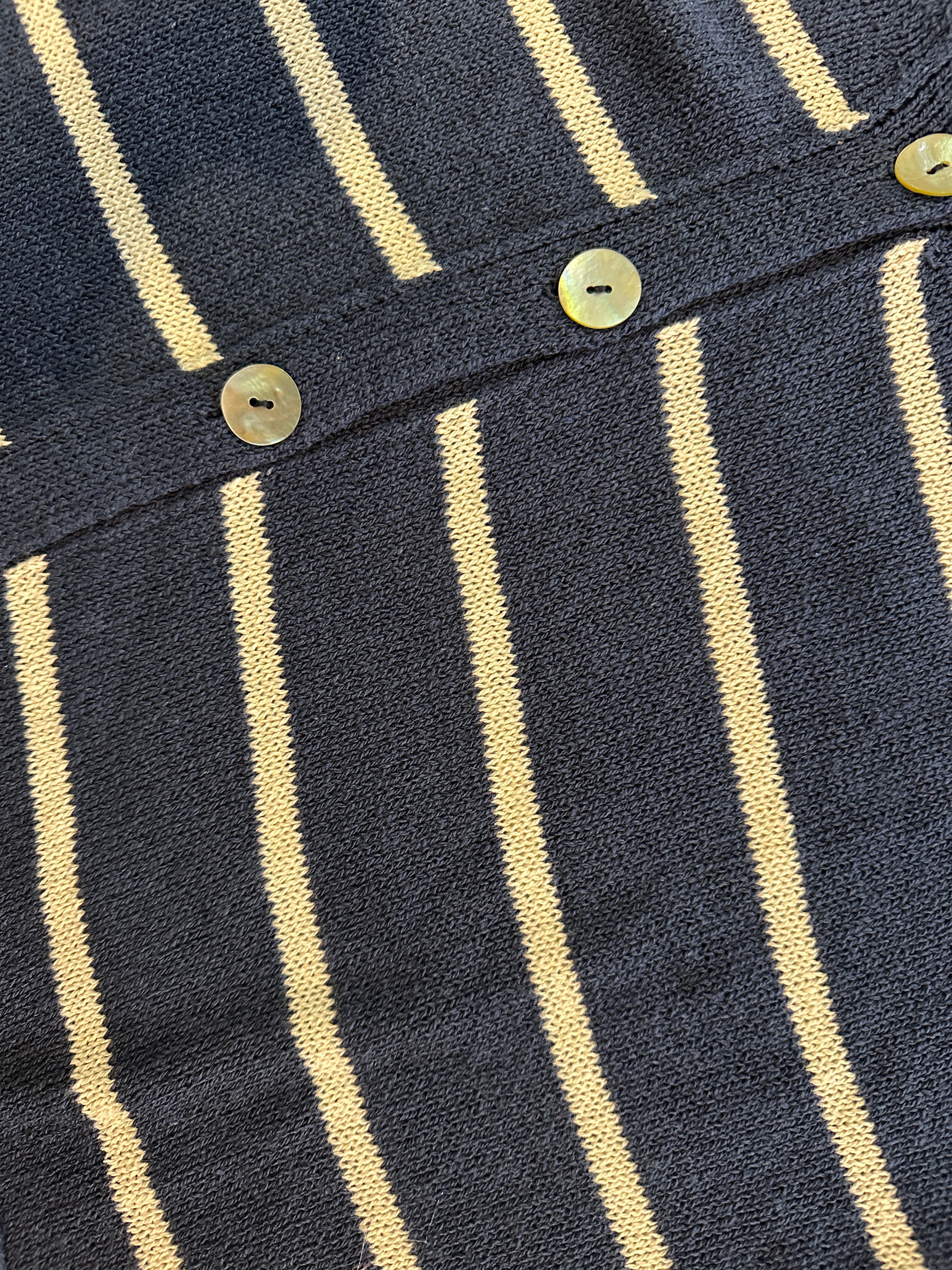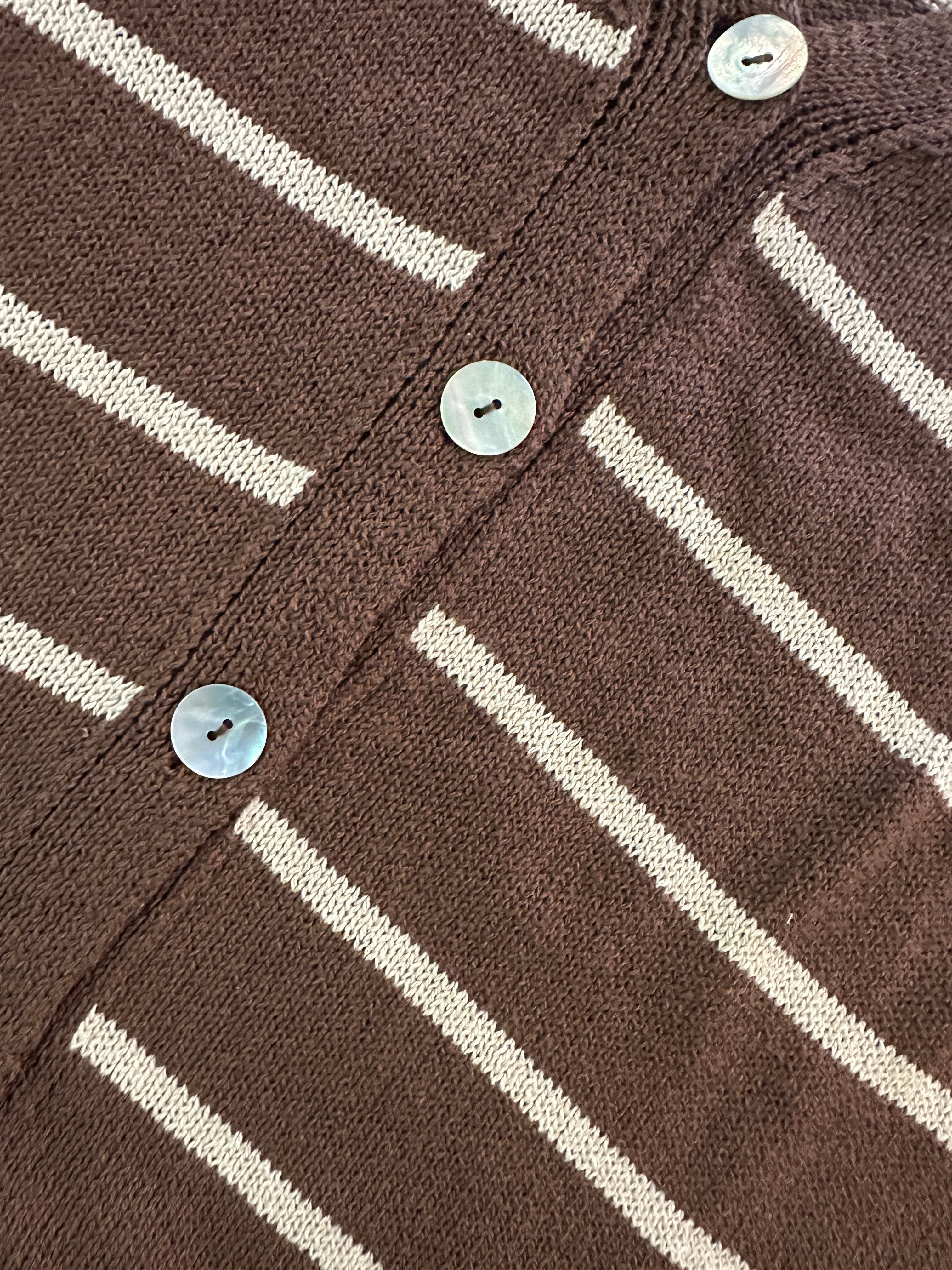 Descrizione: Cardigan in cotone smacchinato a righe. Scollatura a V con bottoni sul davanti. Manica lunga