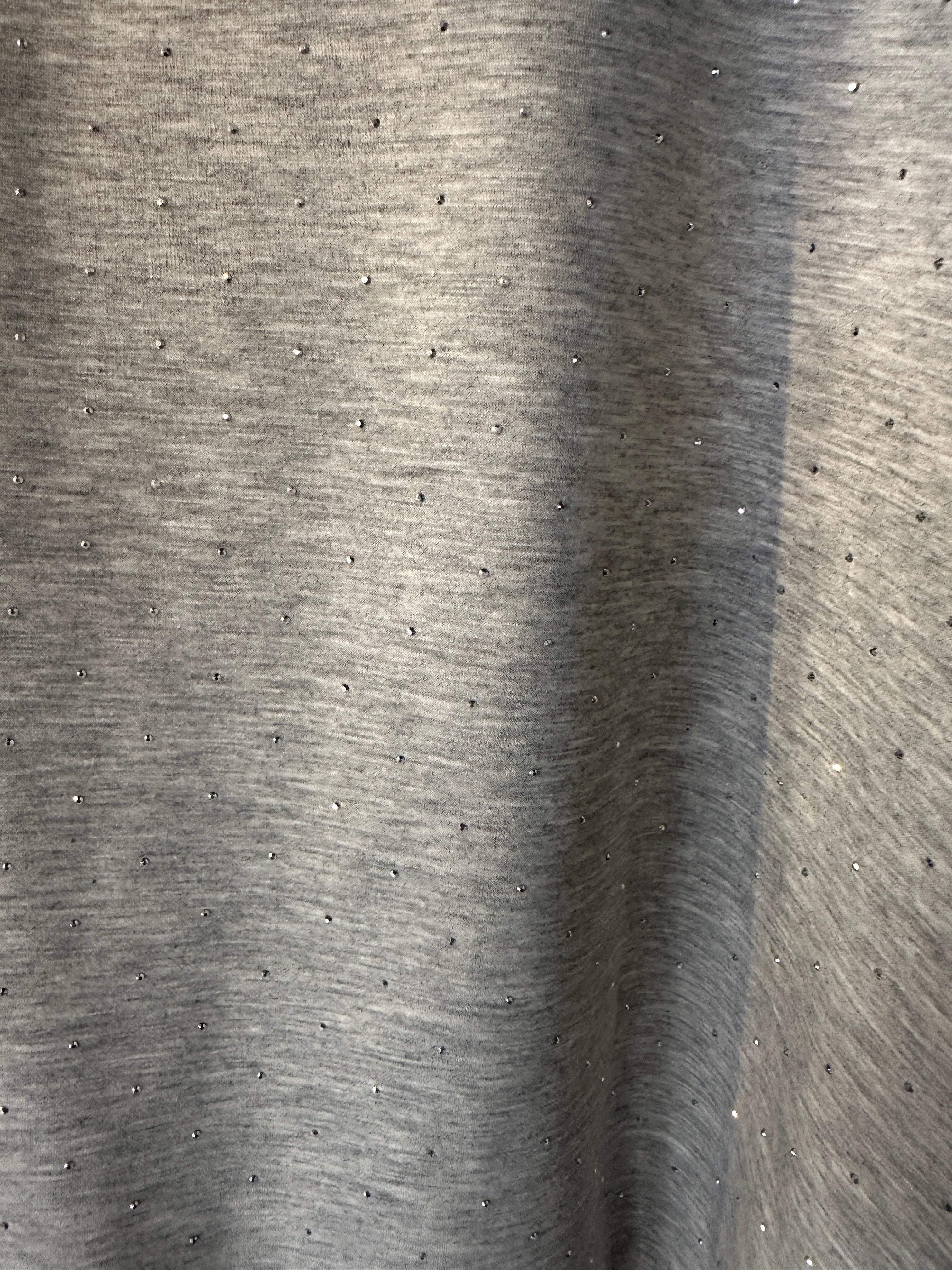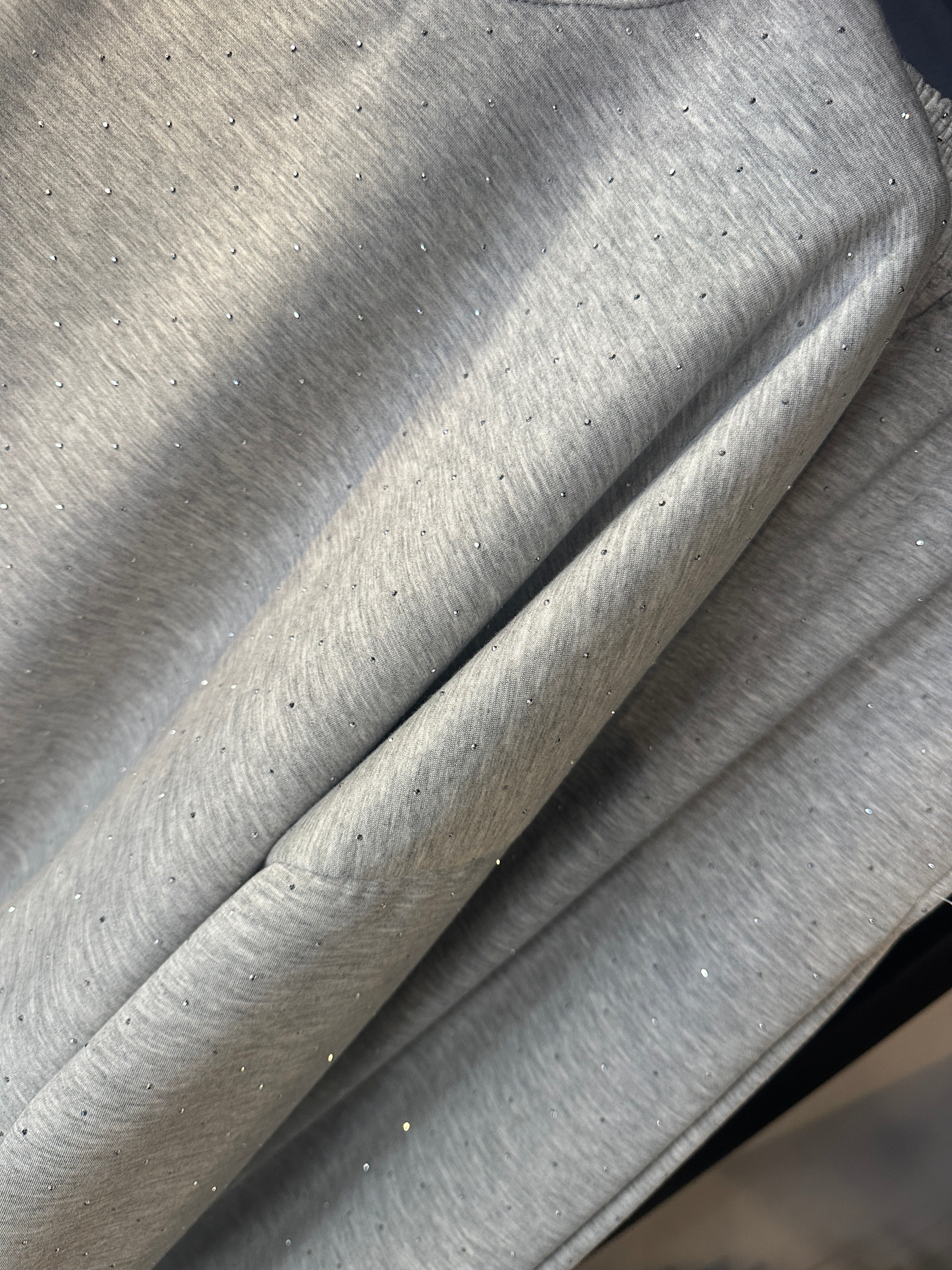 Descrizione: Felpa girocollo in tessuto tecnico con strass. Scollo rotondo. Spalle scese e maniche lunghe con polsino. Fondo con fascione alto