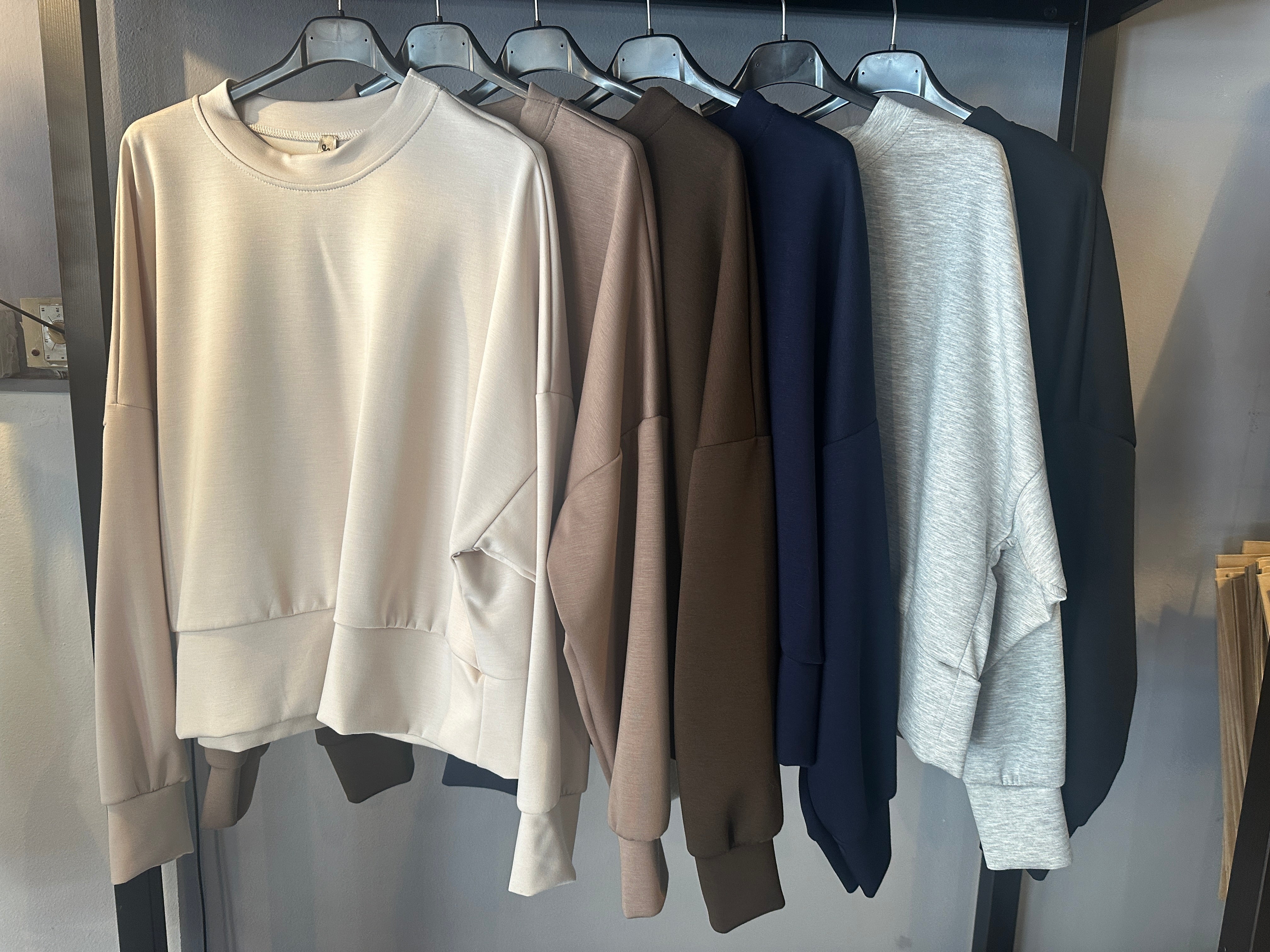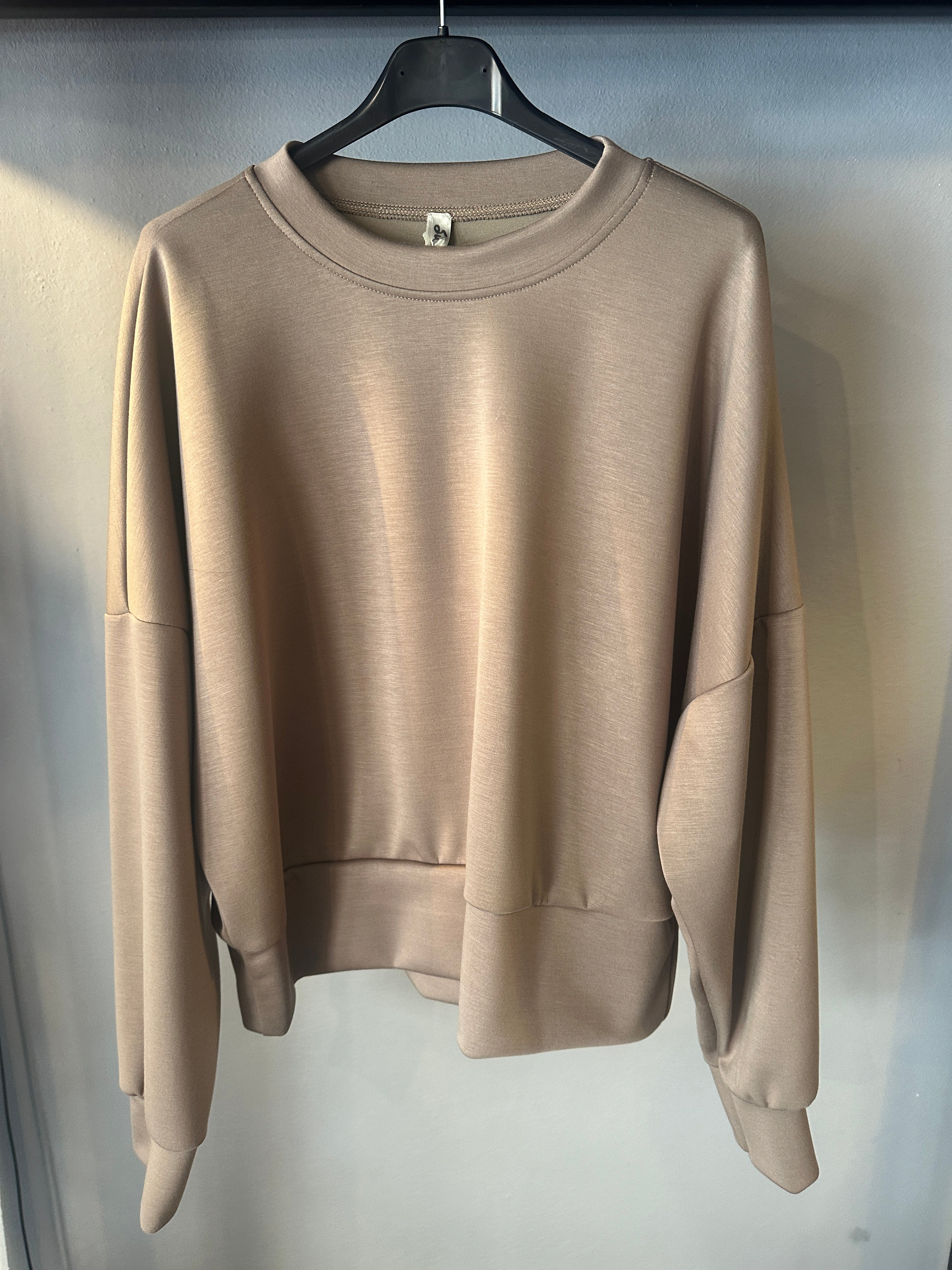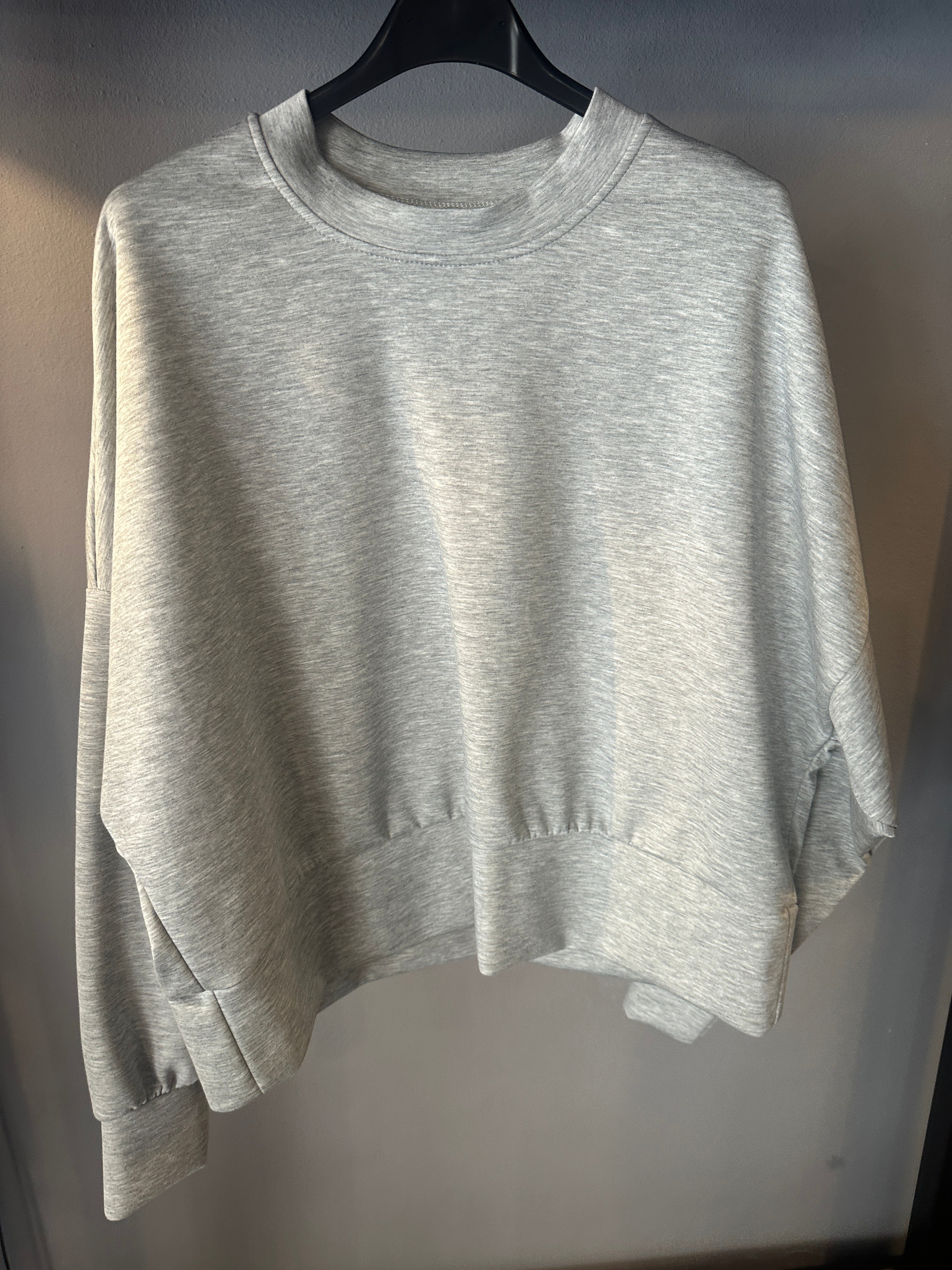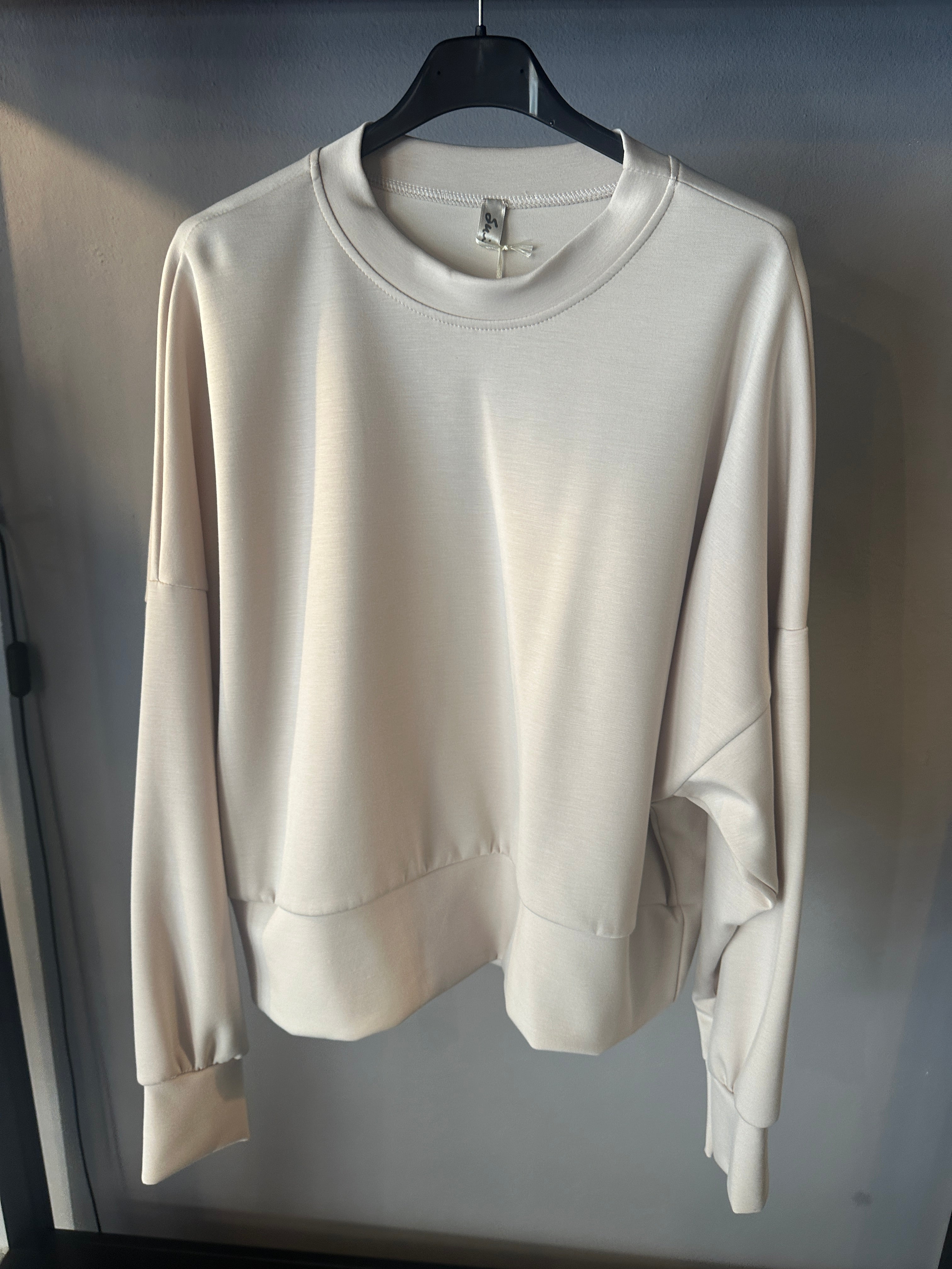 Descrizione: Felpa girocollo in tessuto tecnico. Scollo rotondo. Spalle scese e maniche lunghe con polsino. Fondo con fascione alto