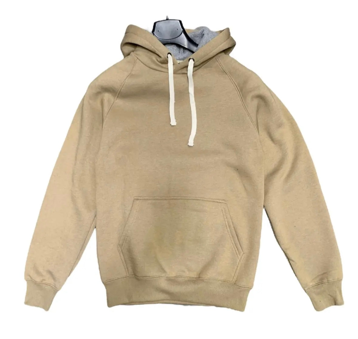 Descrizione: Felpa da uomo con cappuccio regolabile, con maniche raglan, orlo e polsi a coste e tasca marsupio. Interno felpato.