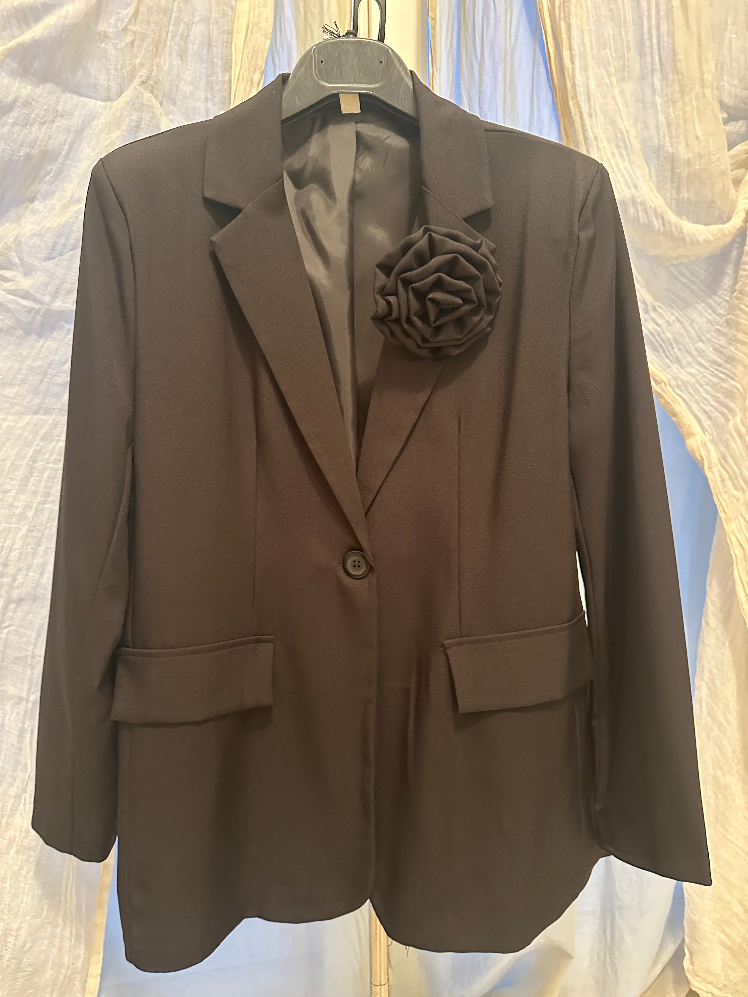 Descrizione: Giacca Donna con collo a revers. Chiusura con 1 bottone. Spilla a fiore