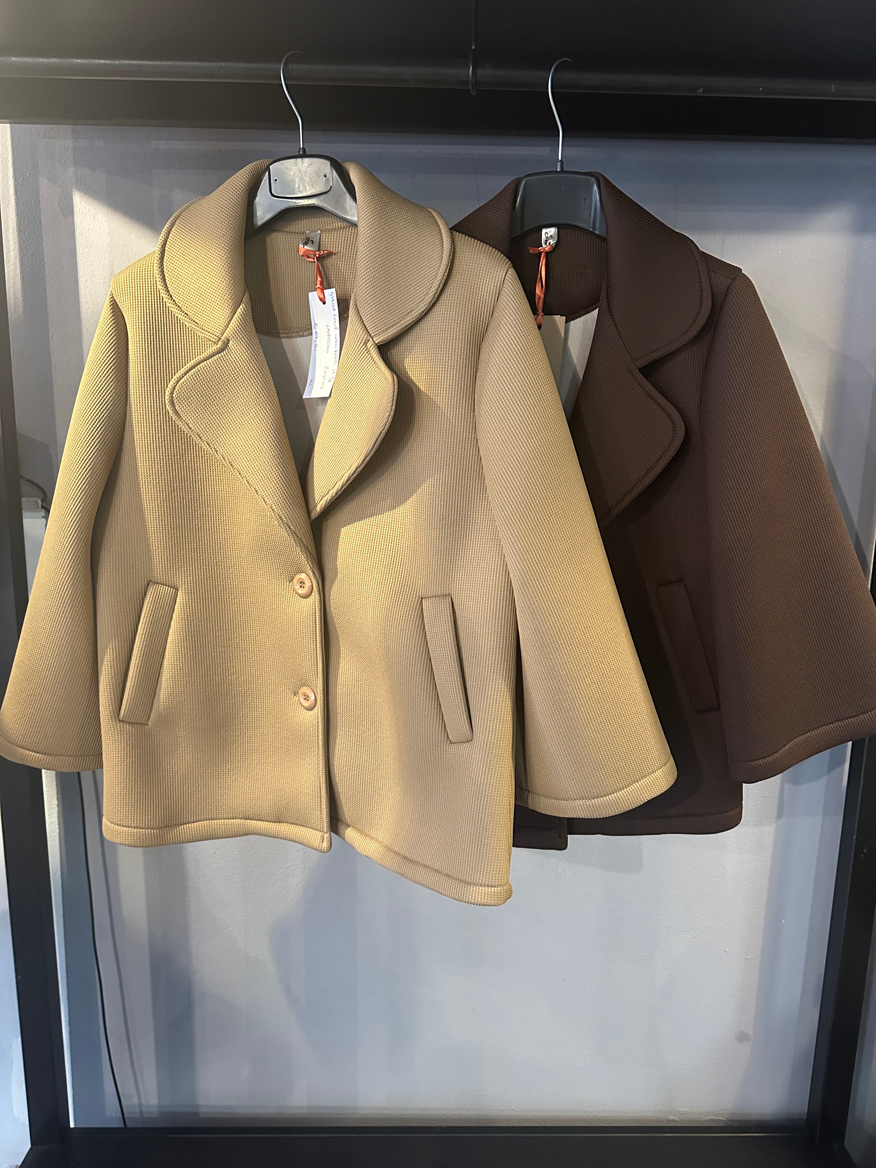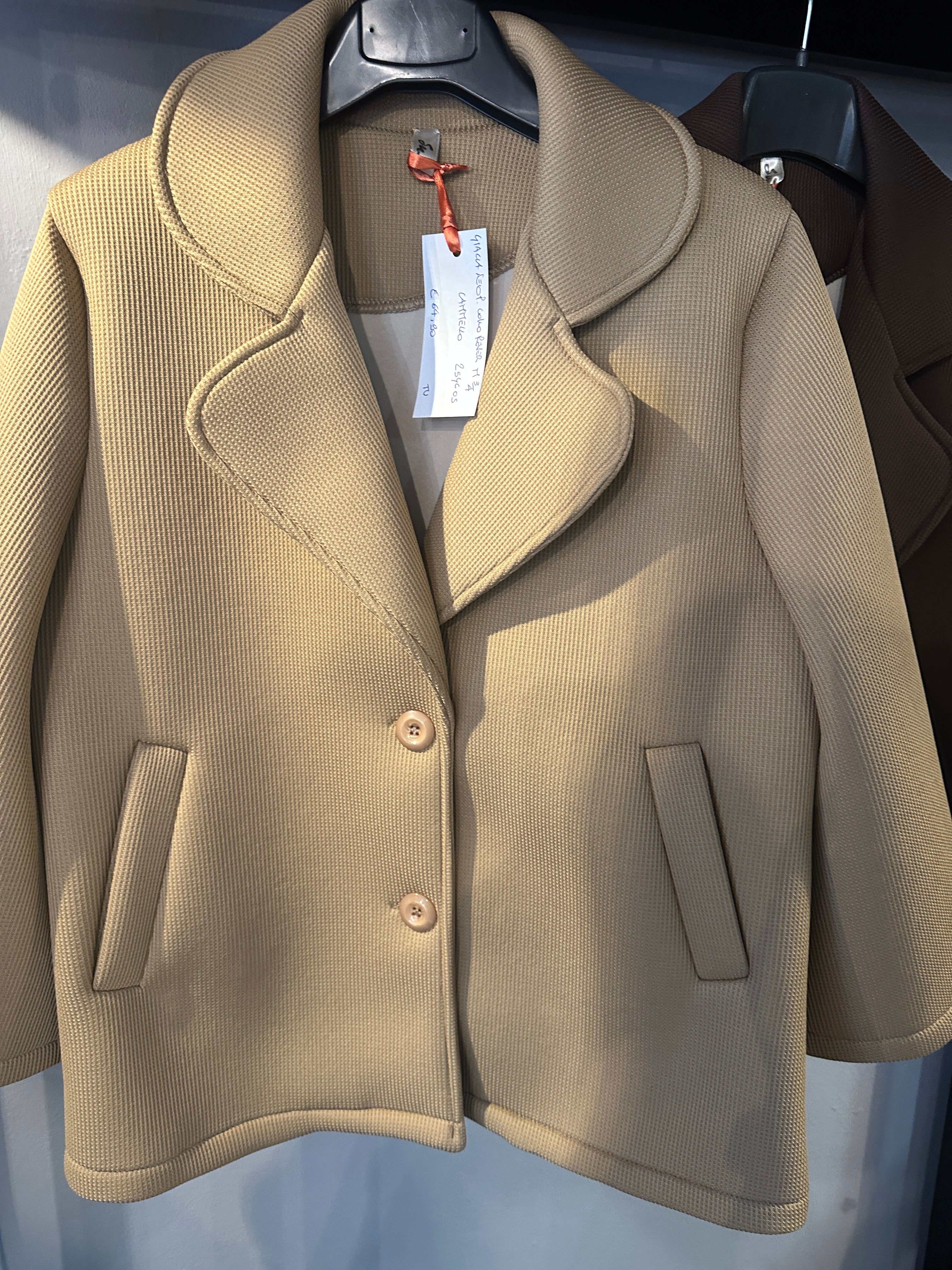 Descrizione: Giacca Donna in Neoprene. Collo Revers Tondo. Tasche a filetto. Chiusura frontale con bottoni. Maniche lunghe.