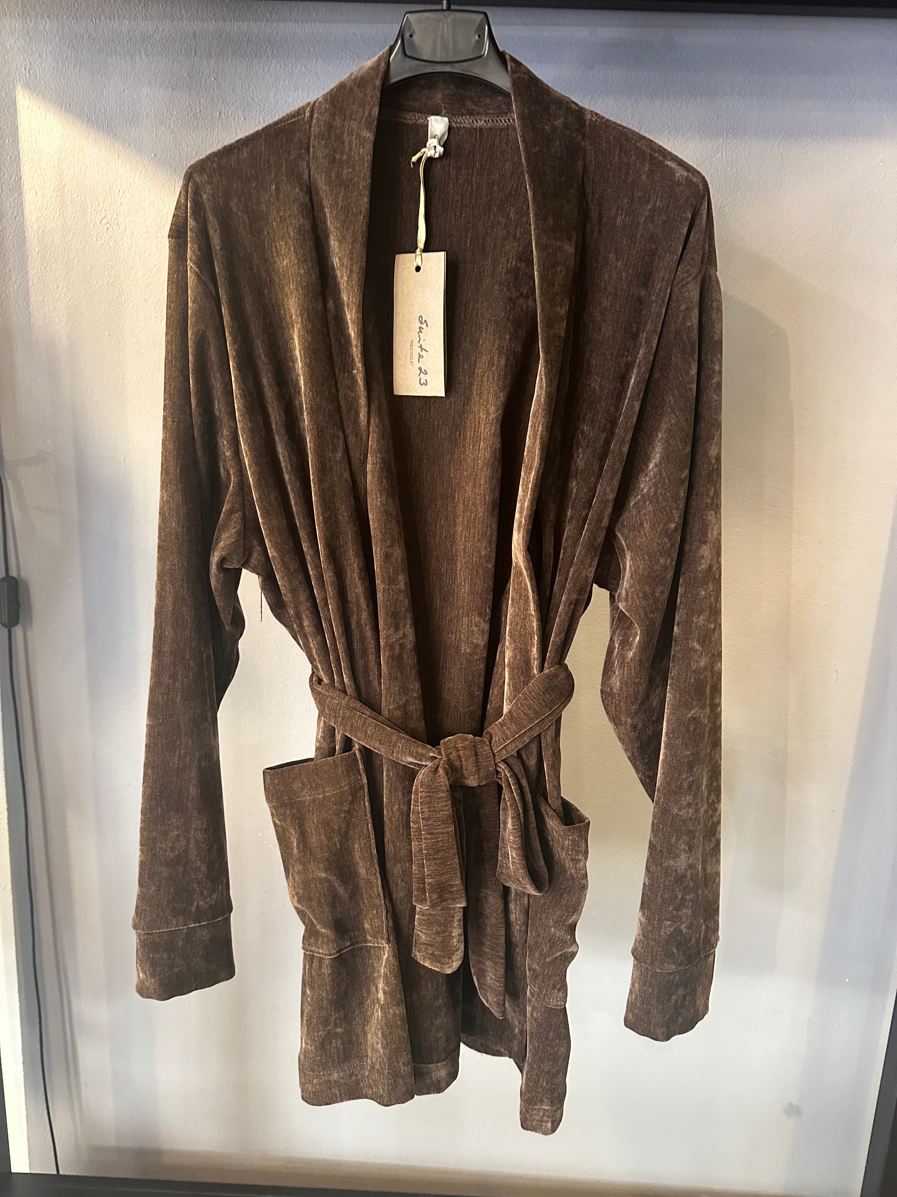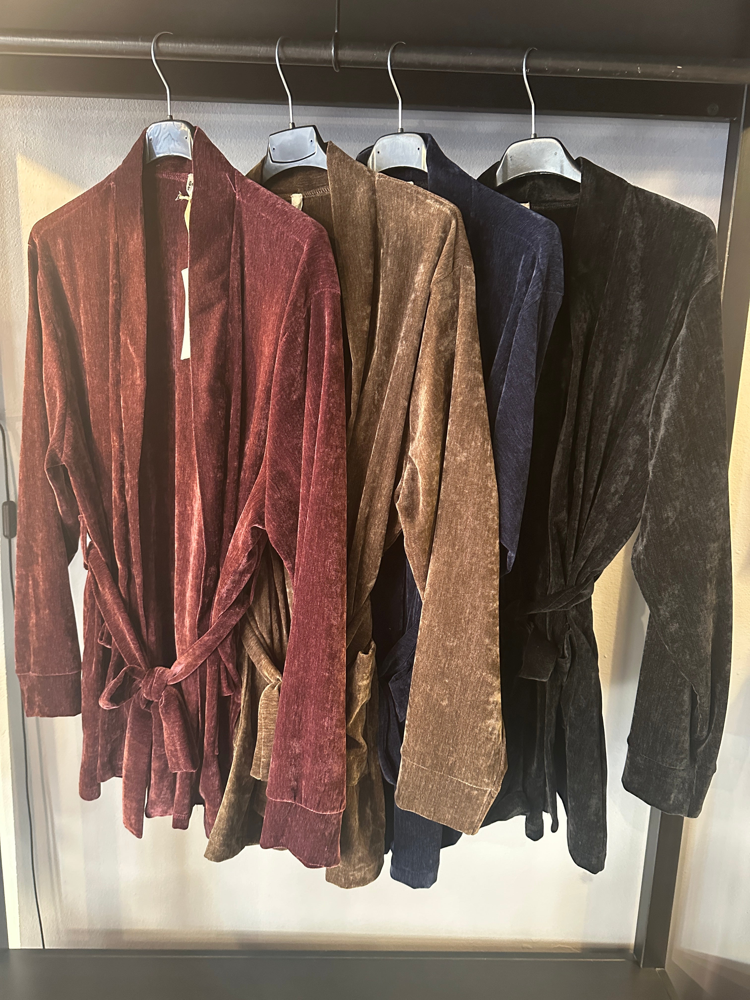 Descrizione: Giacca Vestaglia Donna con cintura in Ciniglia. Collo dritto, manica lunga.