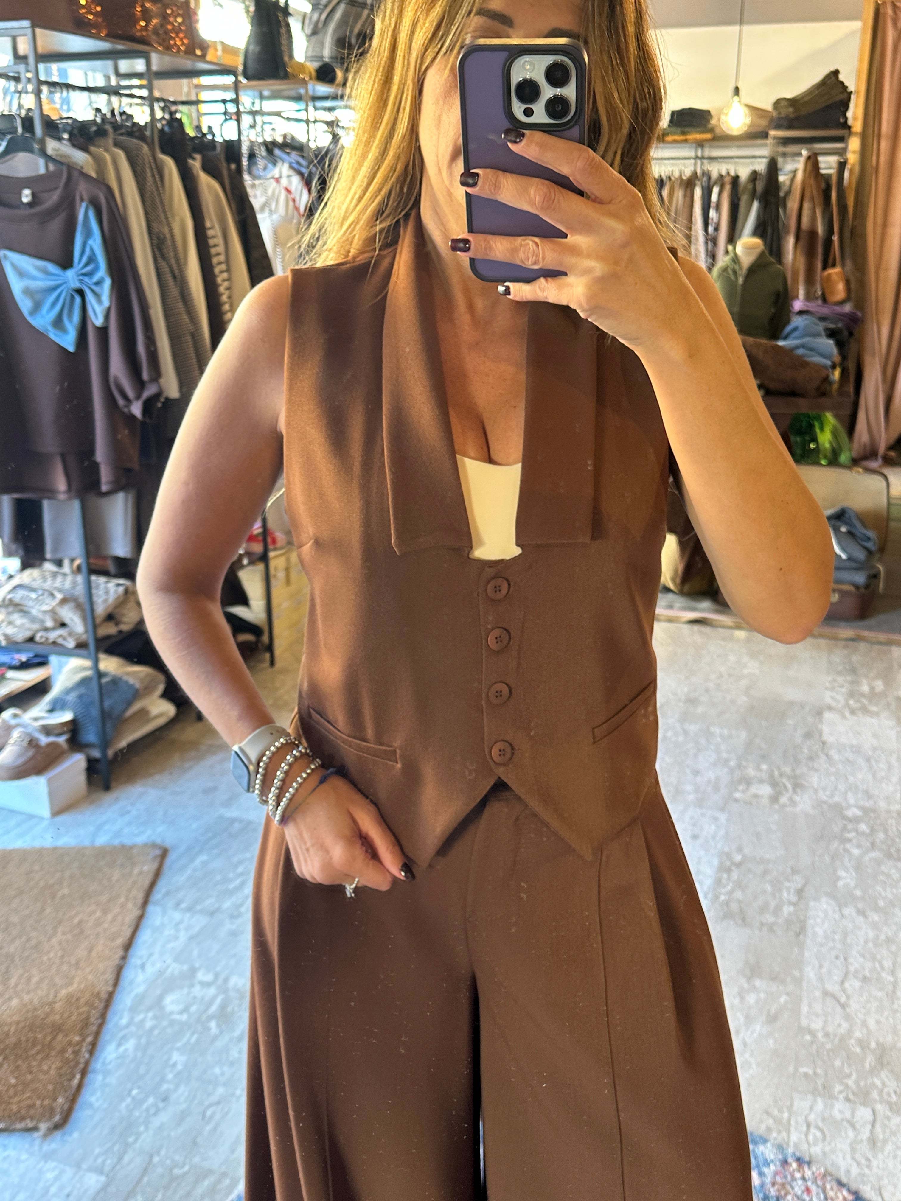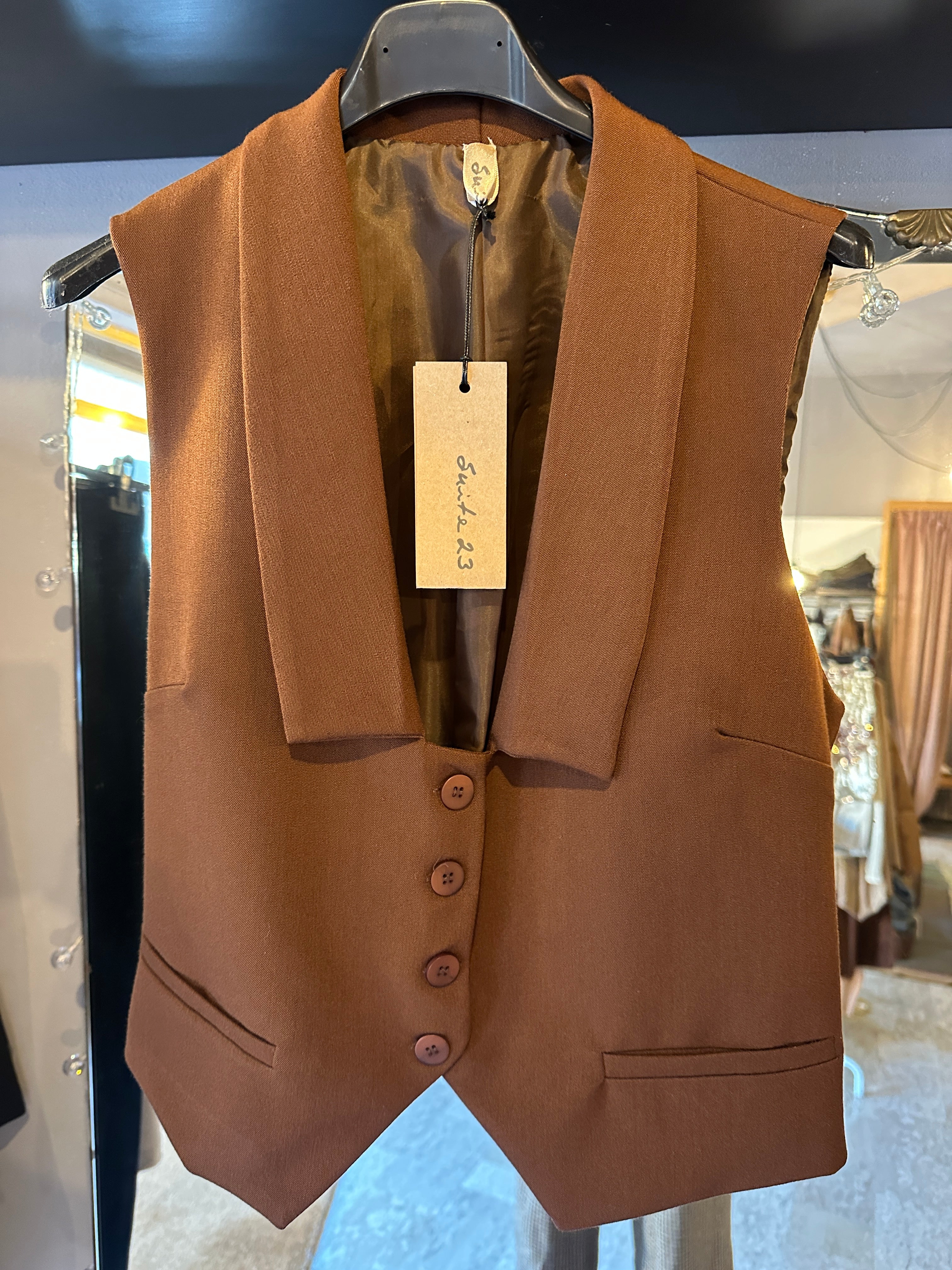 Descrizione: Gilet con collo a revers. Chiusura con bottoni, Tasche finte a filetto