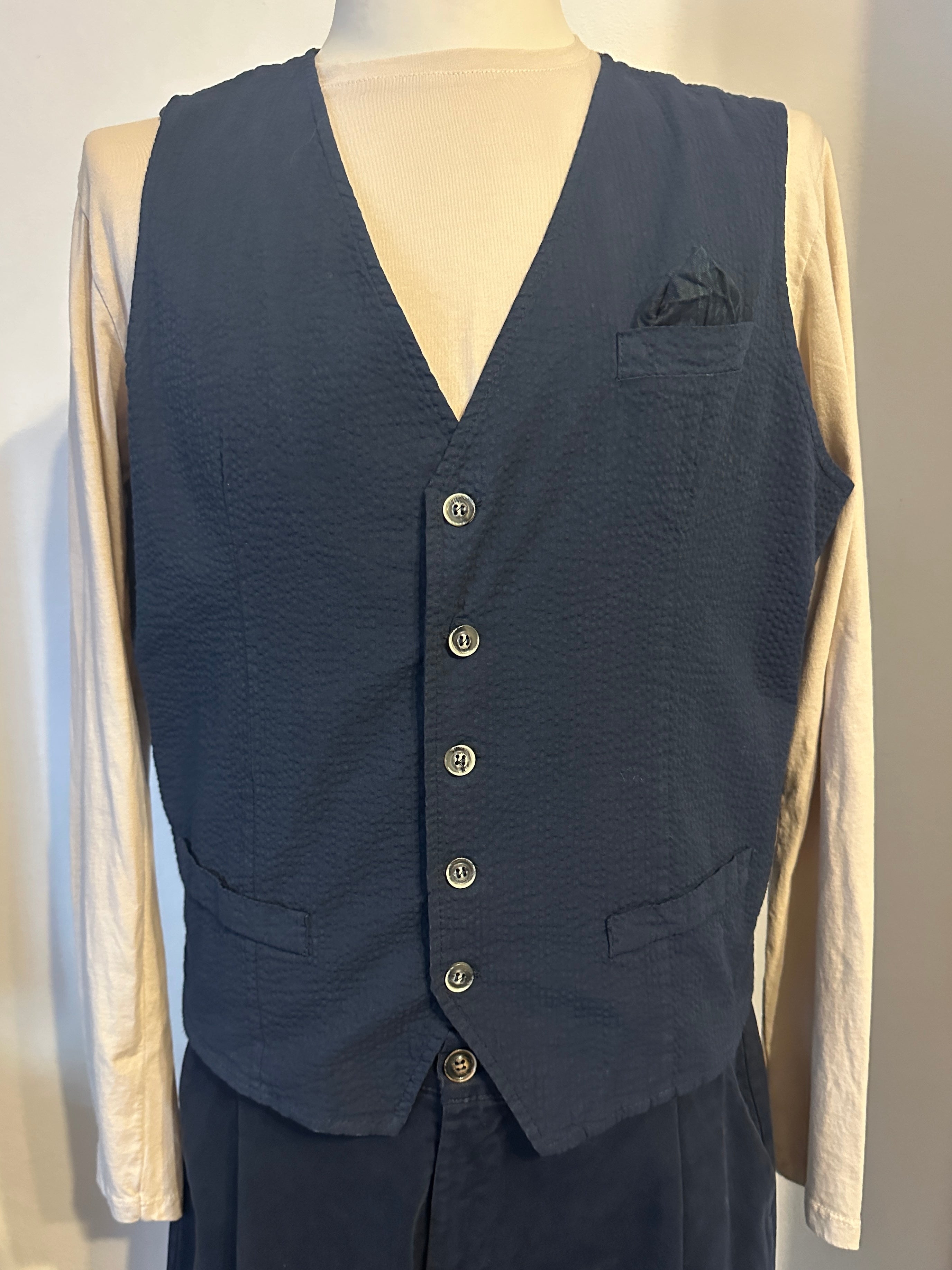 Descrizione: Gilet uomo Sale e pepe. Chiusura frontale con bottoni, taschino con finta pochette.