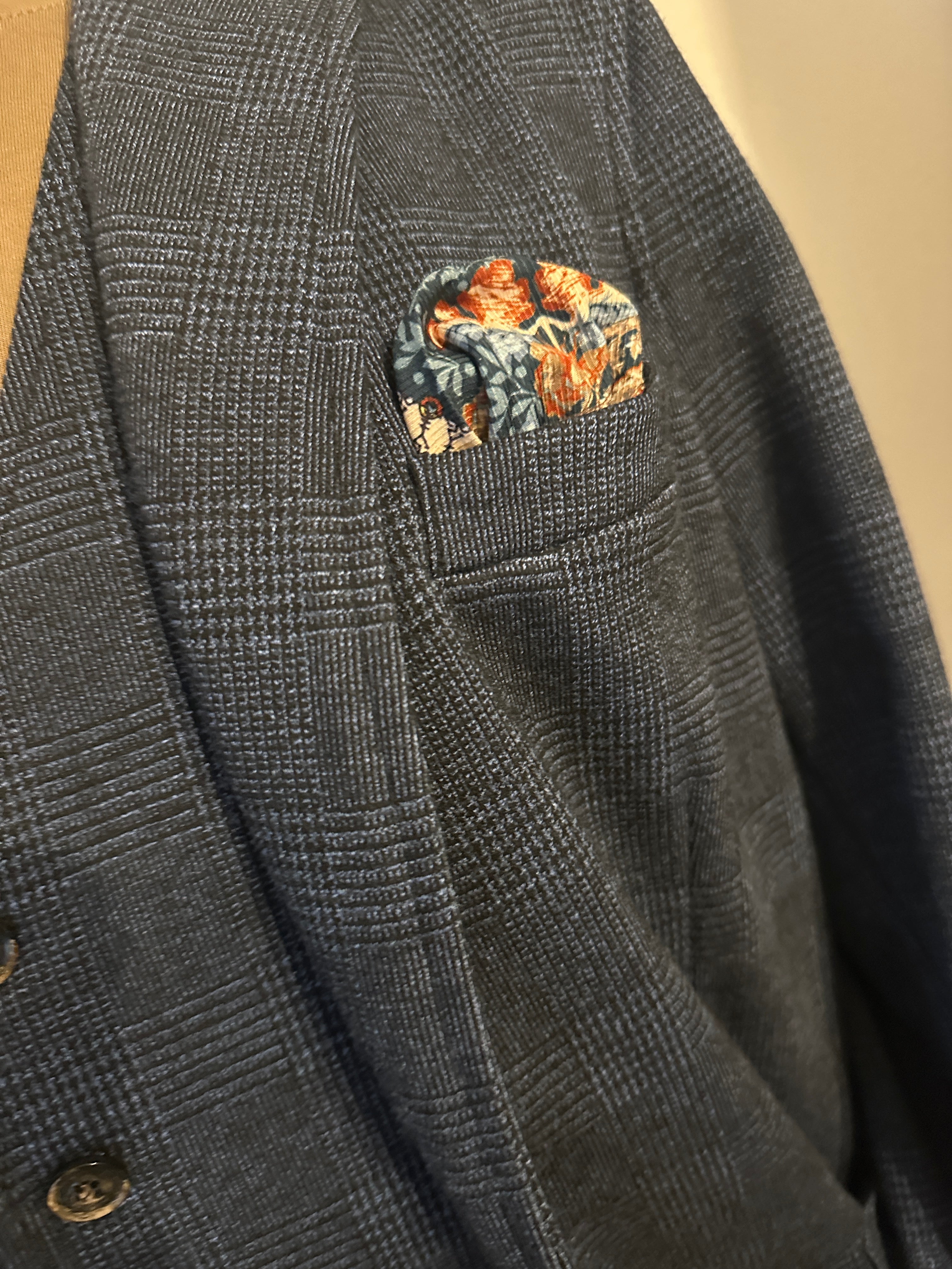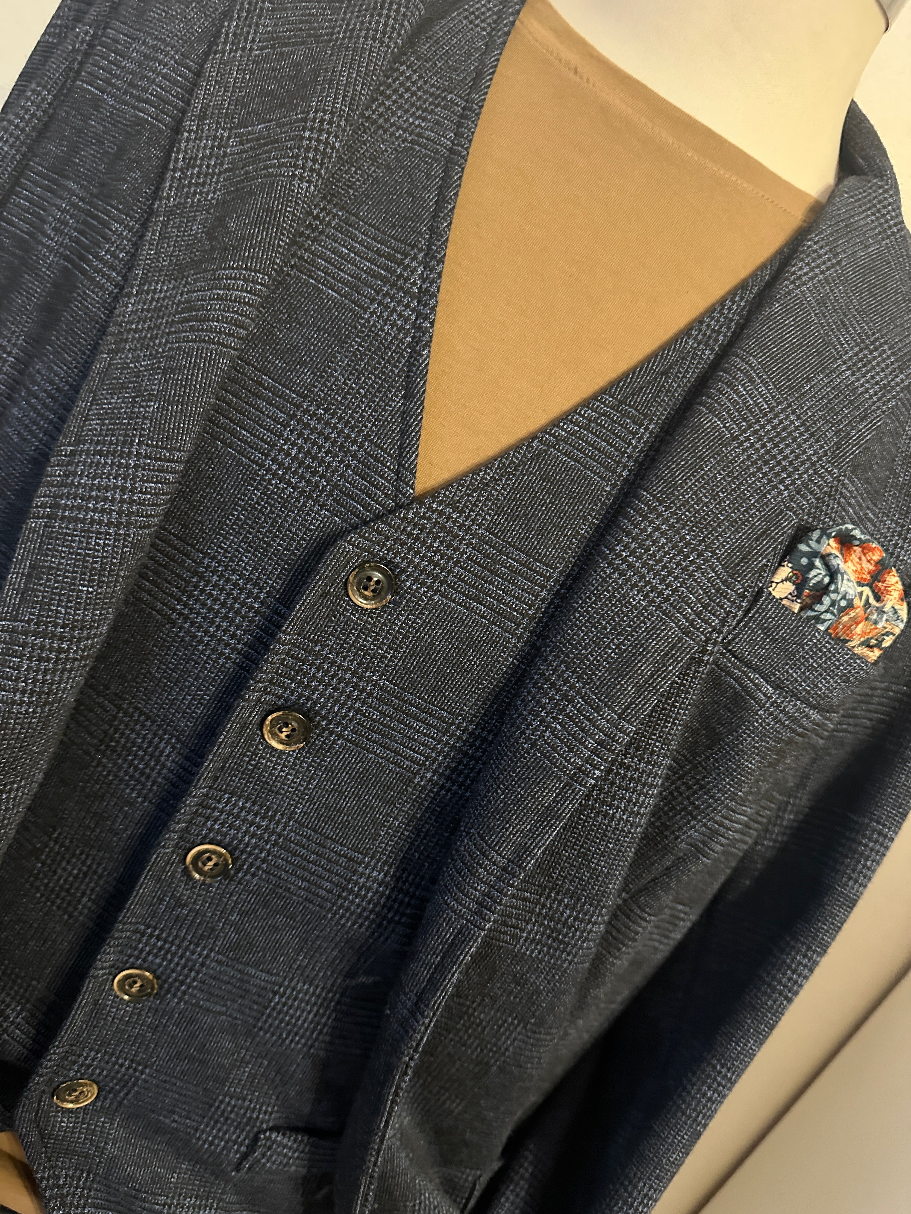 Descrizione: Giacca uomo in principe di Galles . Chiusura frontale con bottoni, taschino con finta pochette.