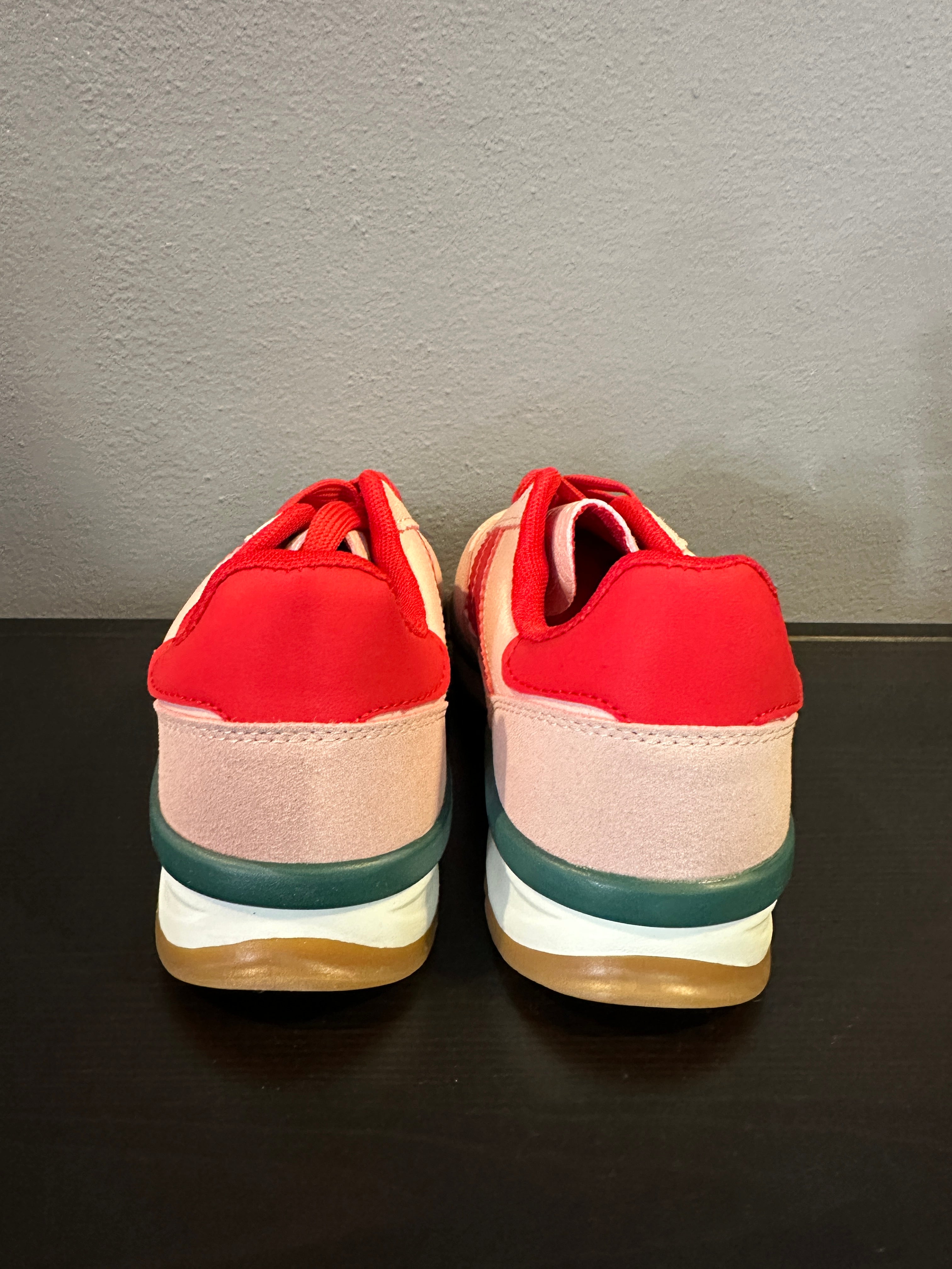 Descrizione: Scarpe sportive con abbinamento di materiali. Parte posteriore a contrasto. Chiusura con lacci.