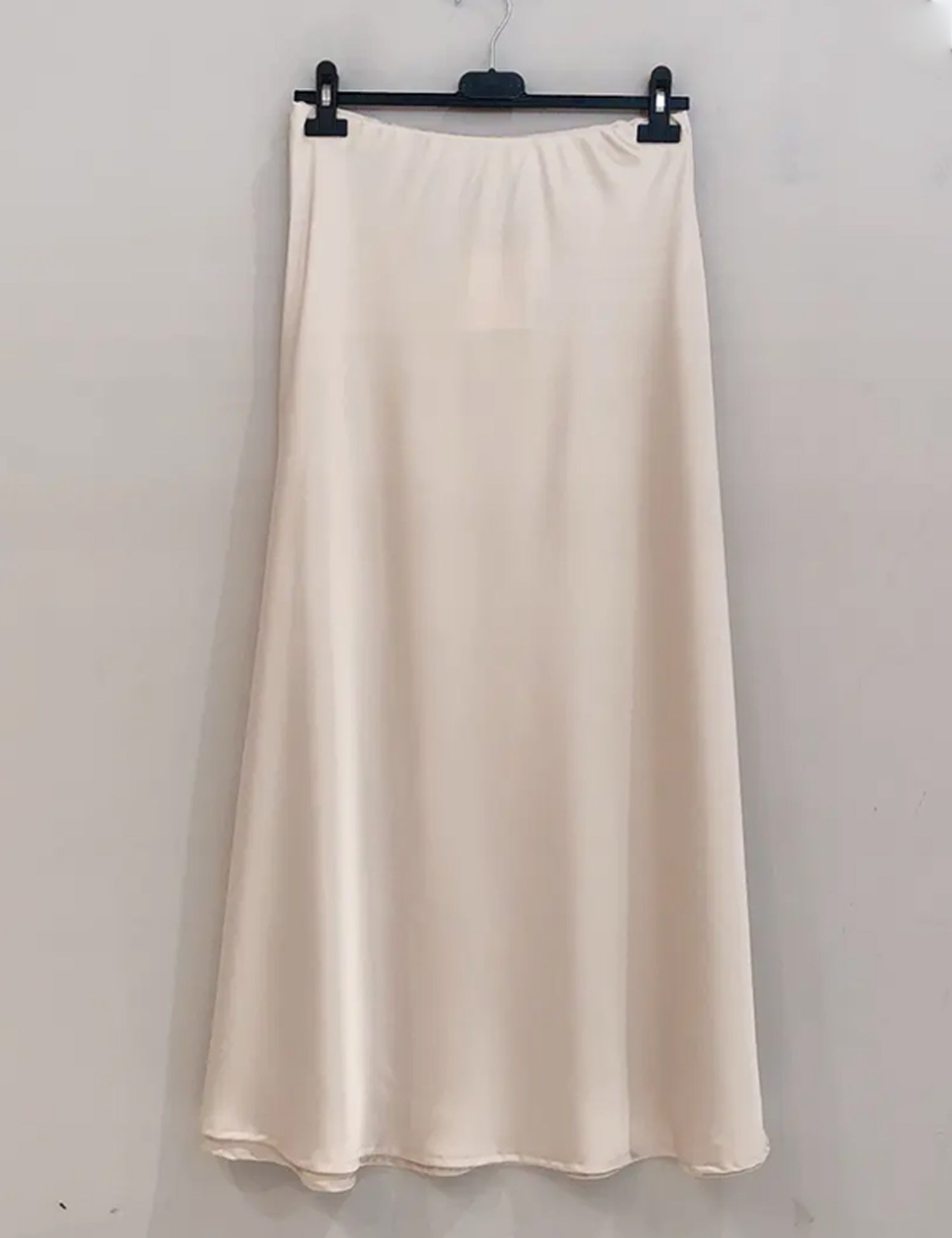 Descrizione: Gonna in raso. Fascia elasticizzata in vita.