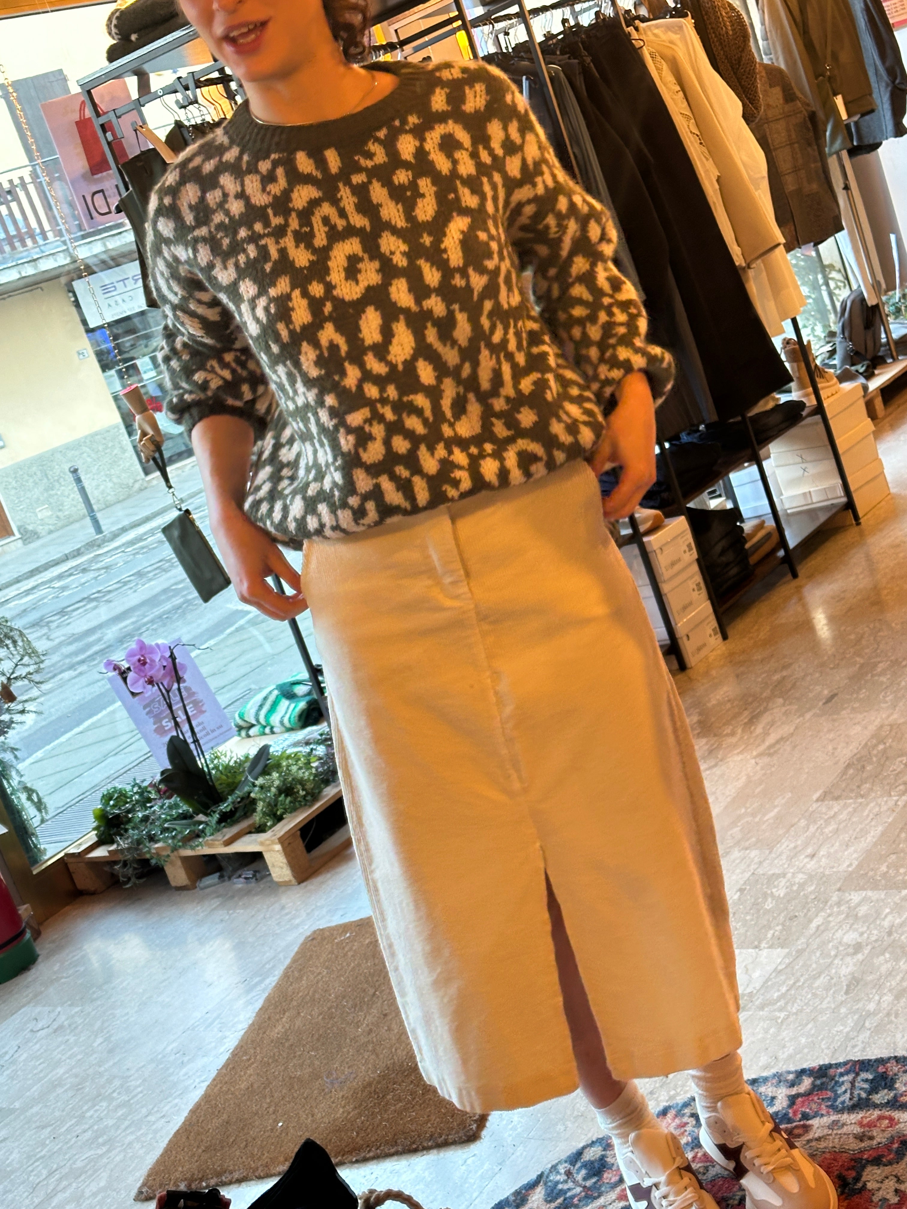 Descrizione: Gonna in velluto millerighe. Apertura frontale con asola e bottone