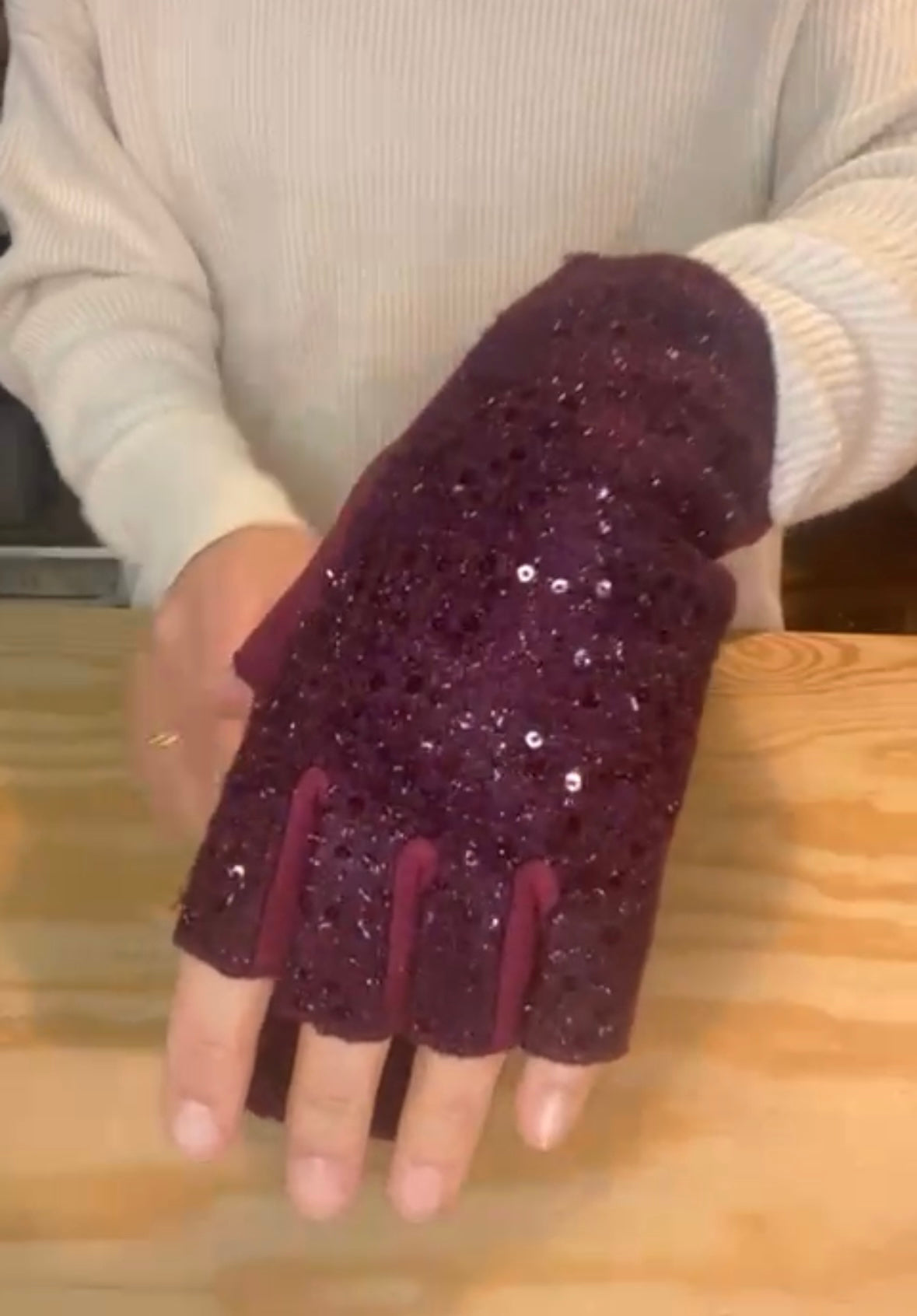 Descrizione: Guanti in tessuto. Dettaglio con impuntura sul polso e ricamo sotto le dita