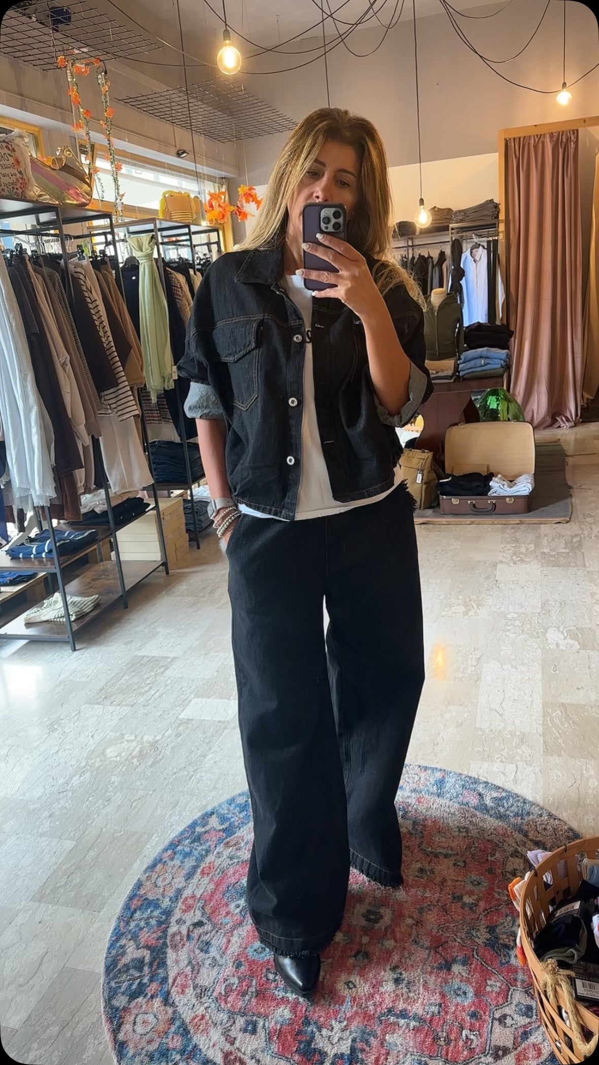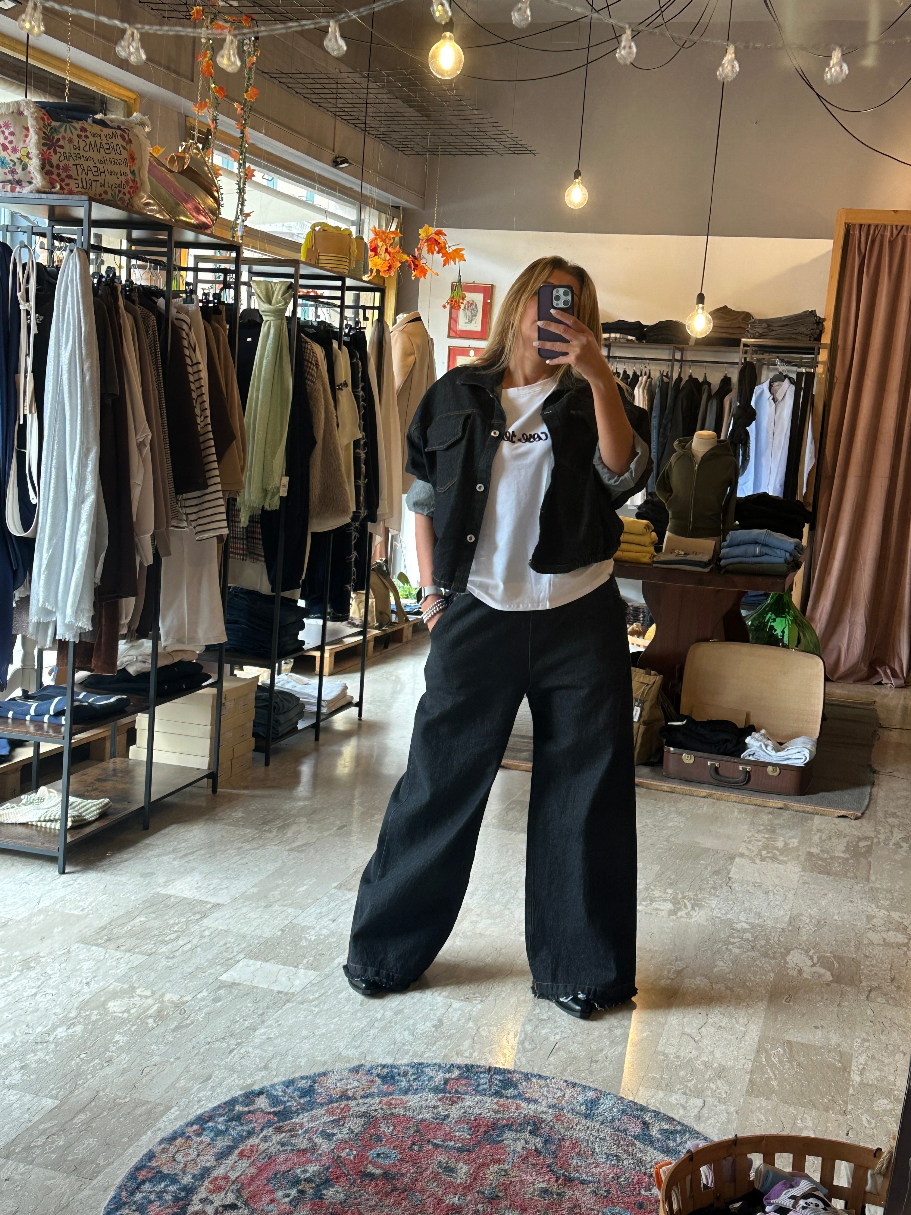 Descrizione: Jeans Donna a Palazzo in jeans. Vita con elastico, tasche sul fianco. Tasche e fondo a taglio vivo sfrangiato