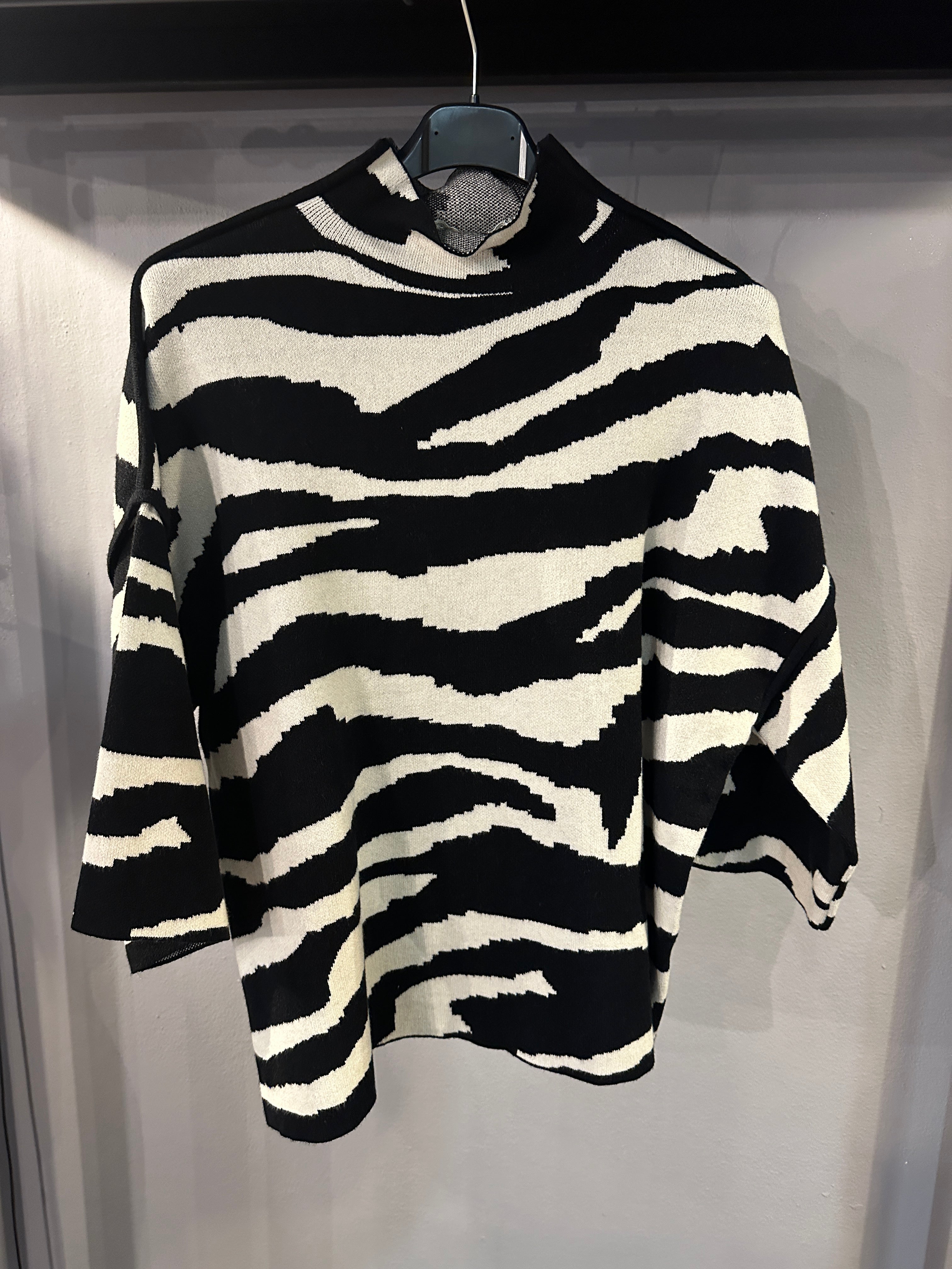 Descrizione: Maglia Donna Jacquard in Viscosa smacchinata. Collo cratere, Manica 3/4