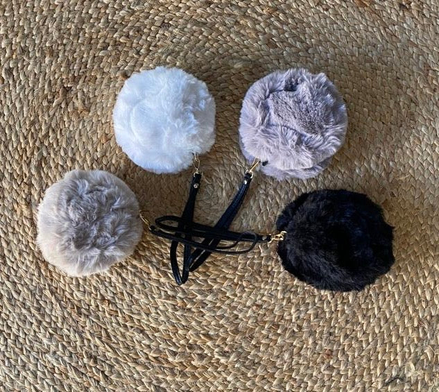 Descrizione: borsa tonda in ecopelliccia. Chiusura con zip, manico in ecopelle