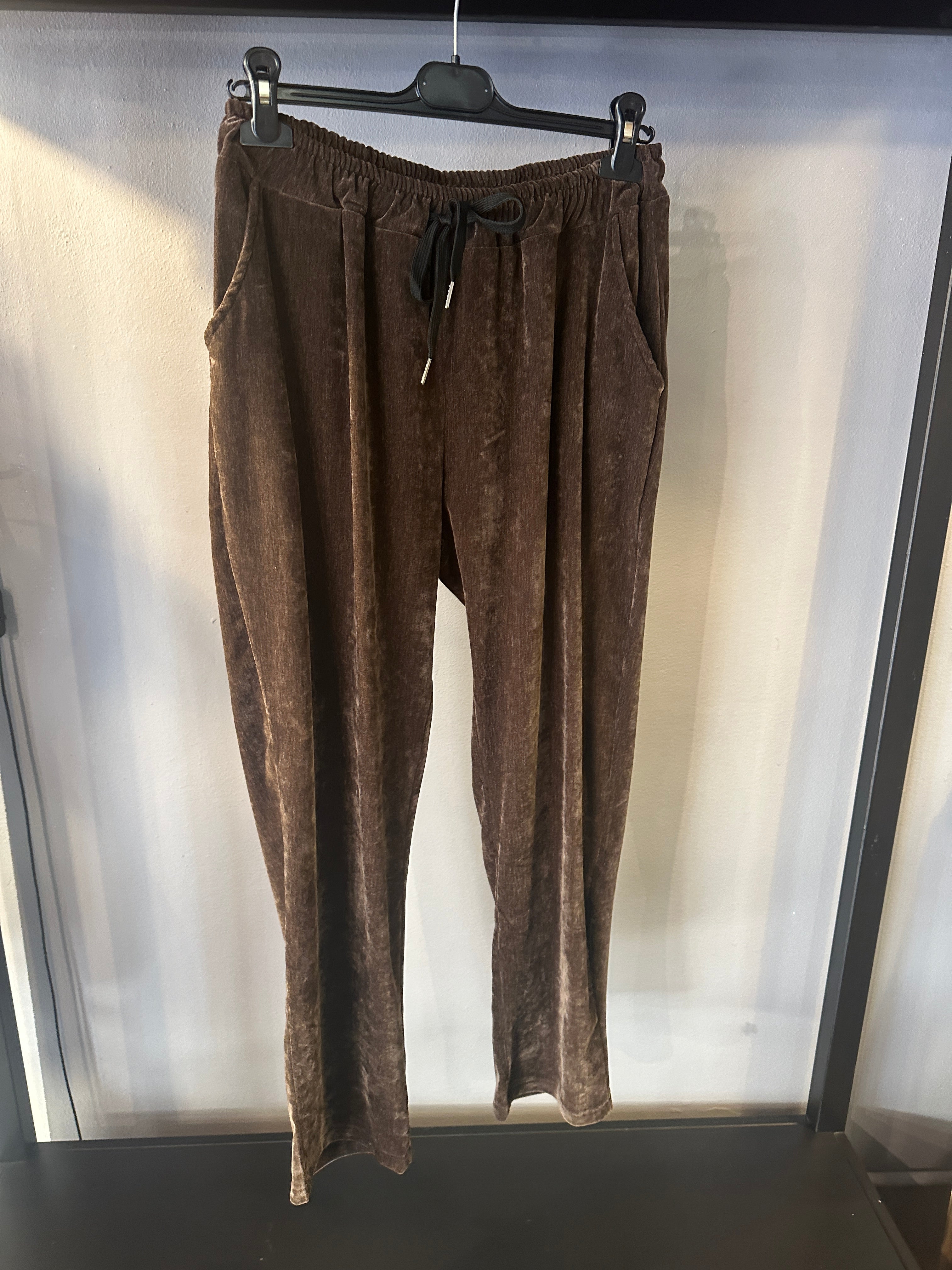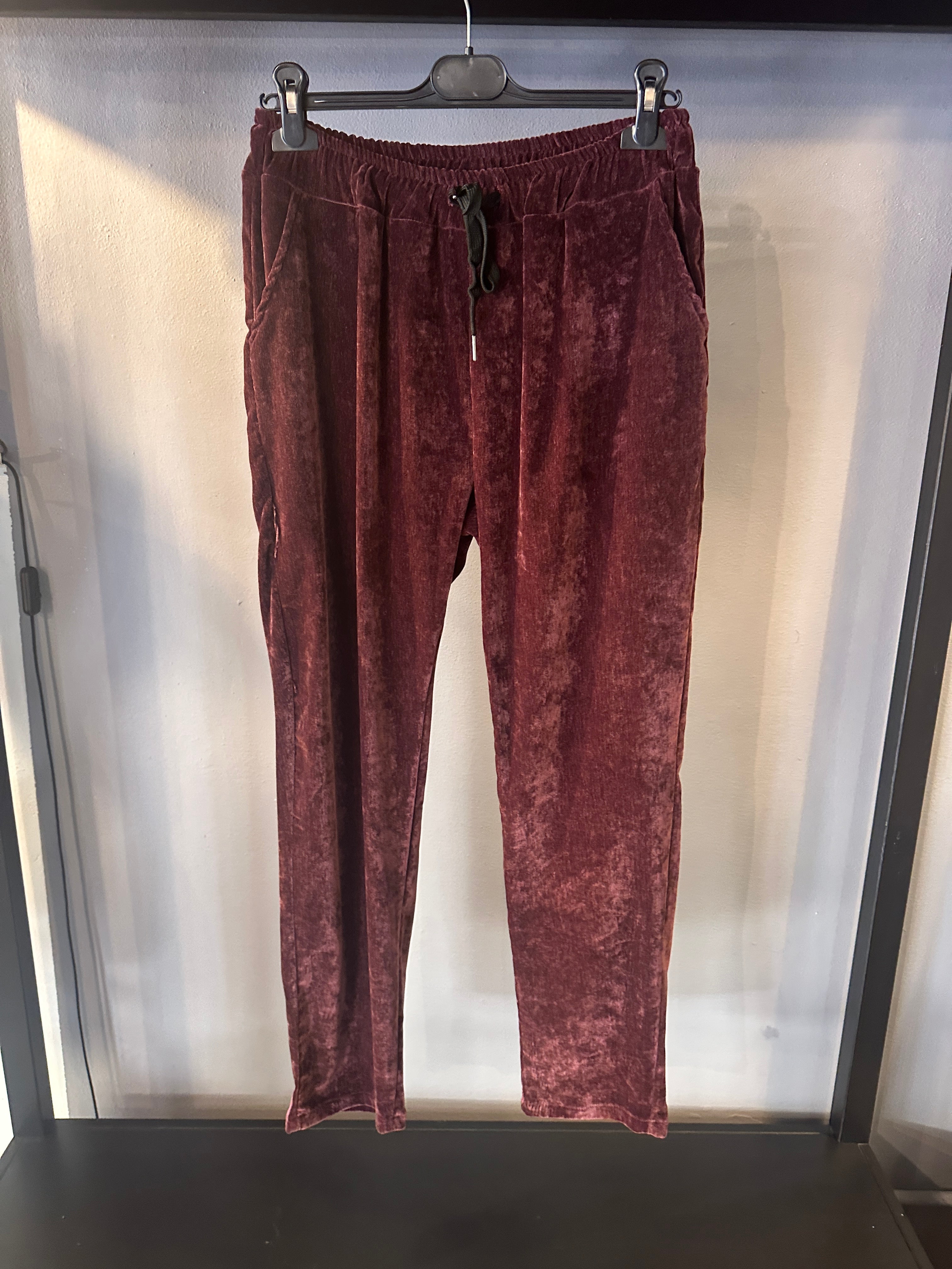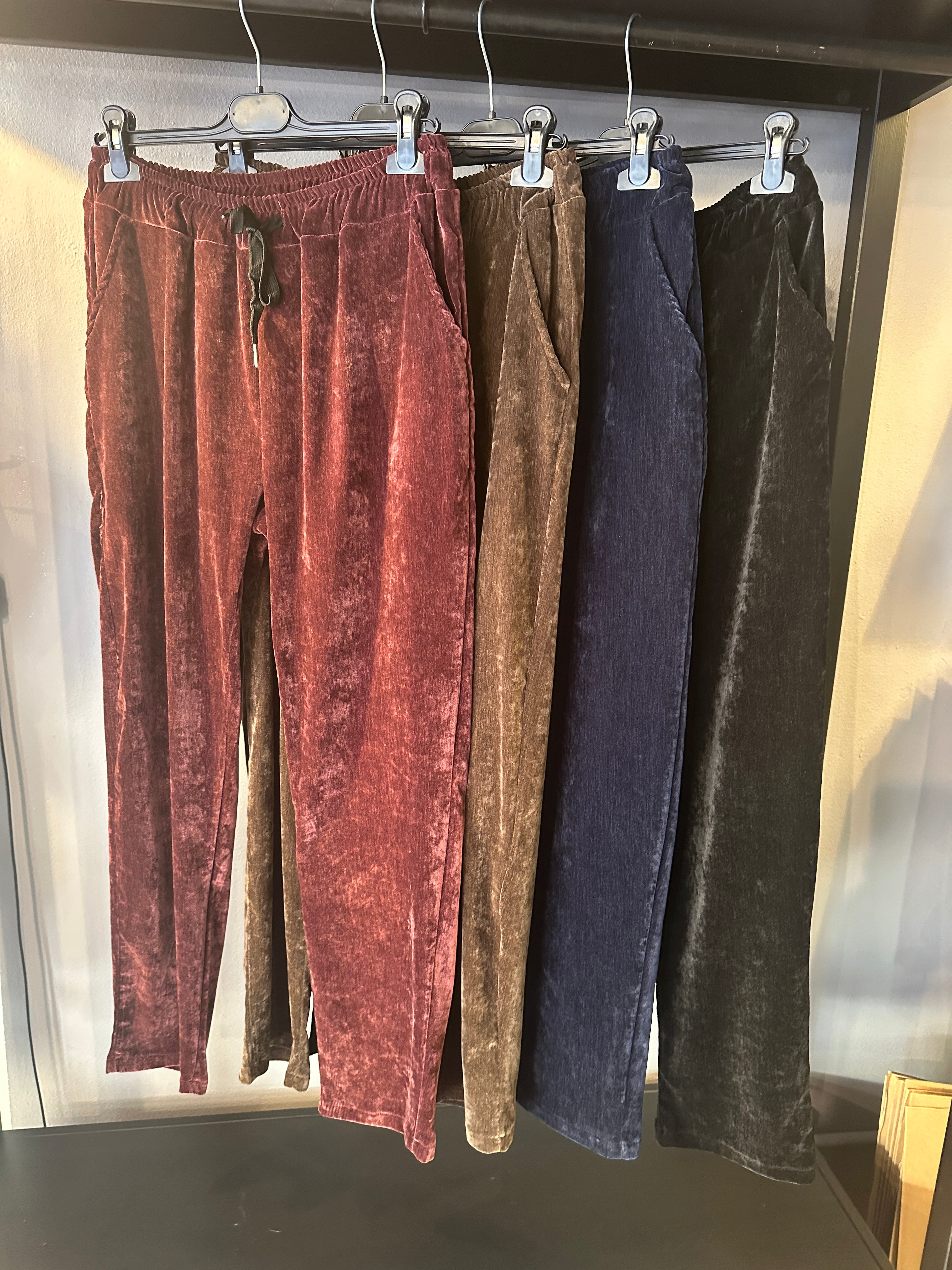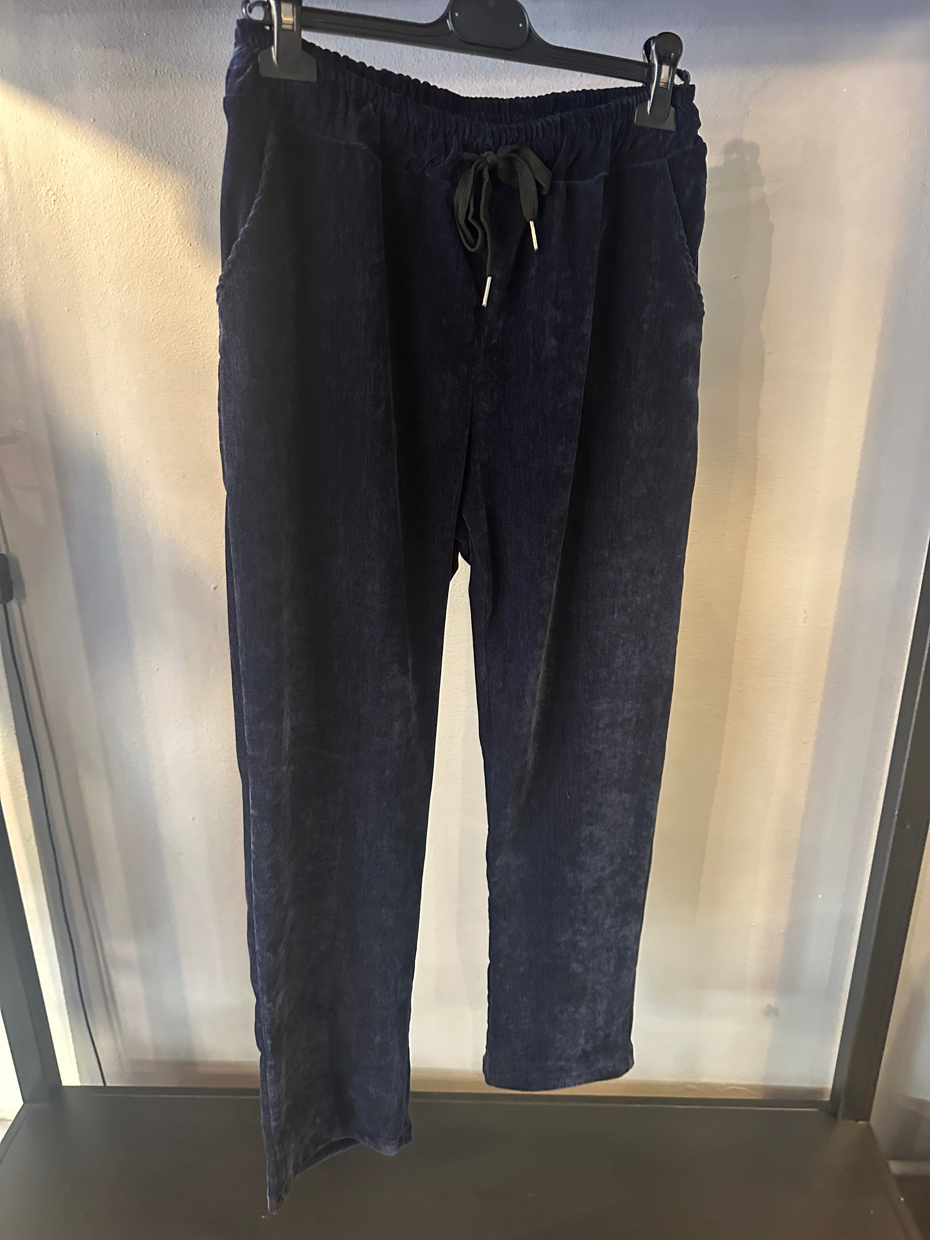 Descrizione: Pantalone Donna a sigaretta in Ciniglia. Fascia elasticizzata in vita con coulisse. Tasche alla francese, gamba dritta