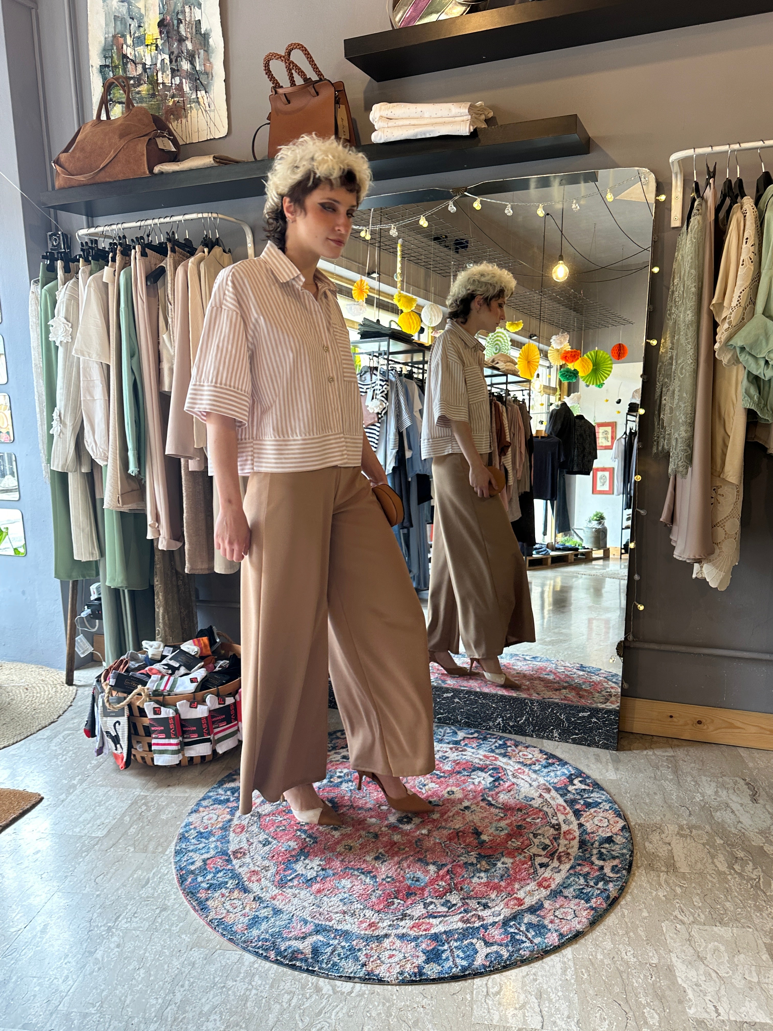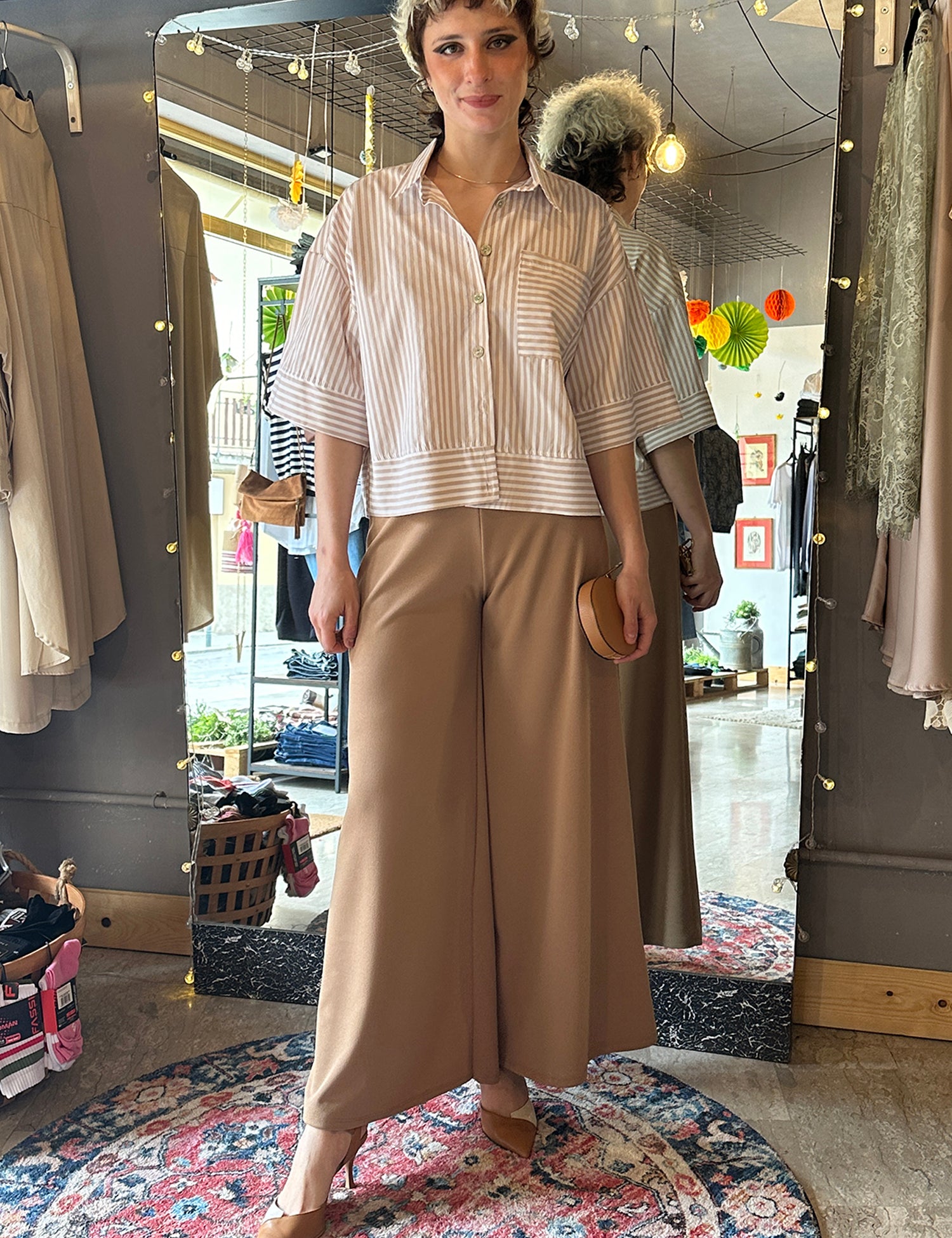 Descrizione: Pantalone Gamba L arga tessuto morbido. Vita con elastico
