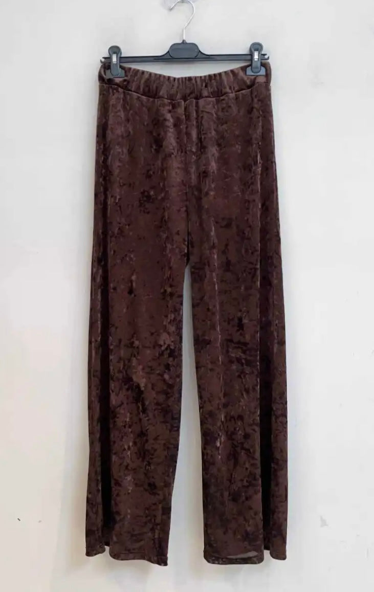 Descrizione: Pantalone dritto in tulle di ciniglia. Fascia elasticizzata in vita.