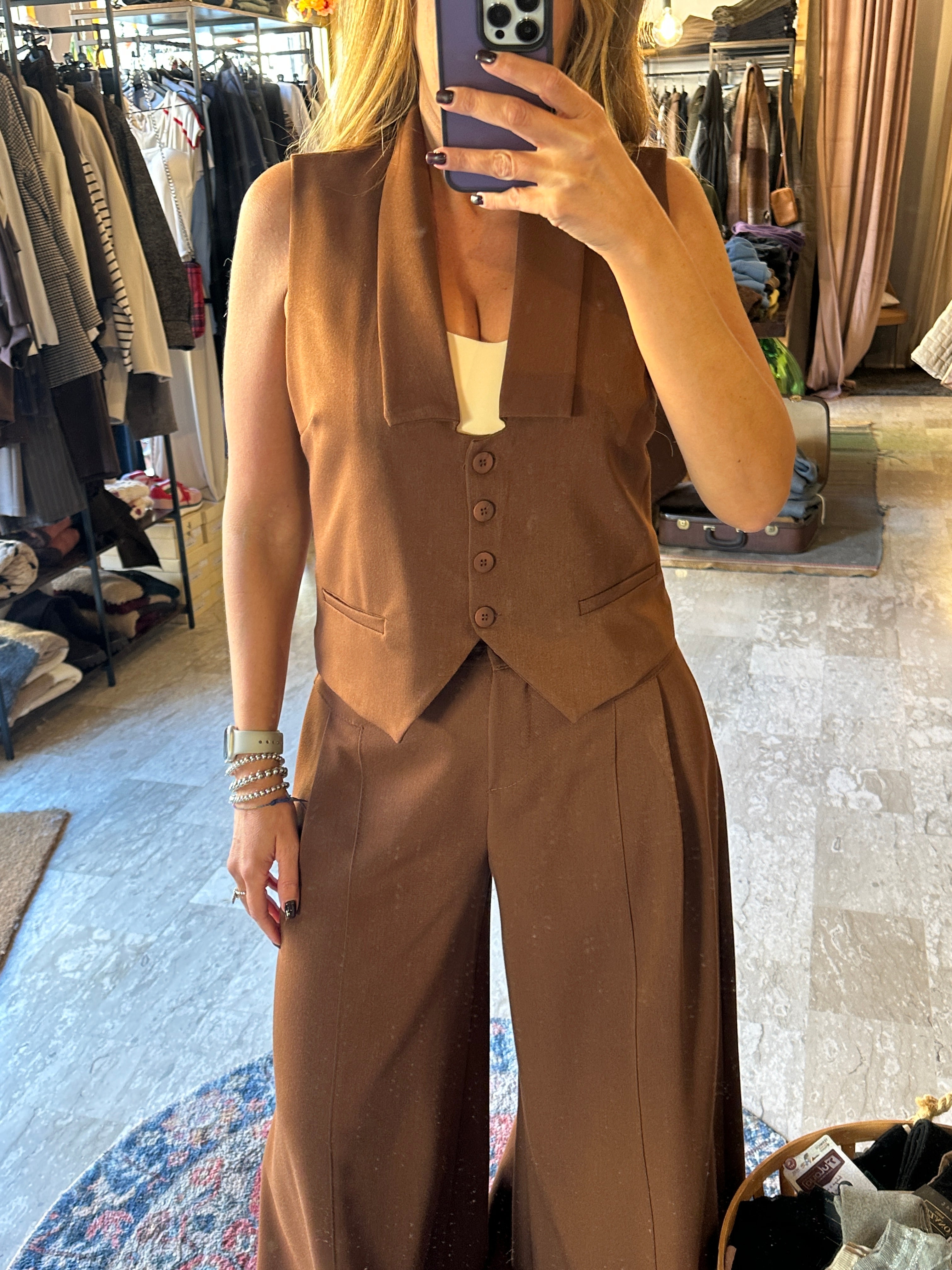 Descrizione: Pantalone Palazzo Donna in Viscosa. Vita alta, taglio sartoriale. Ciusura con zip e bottone