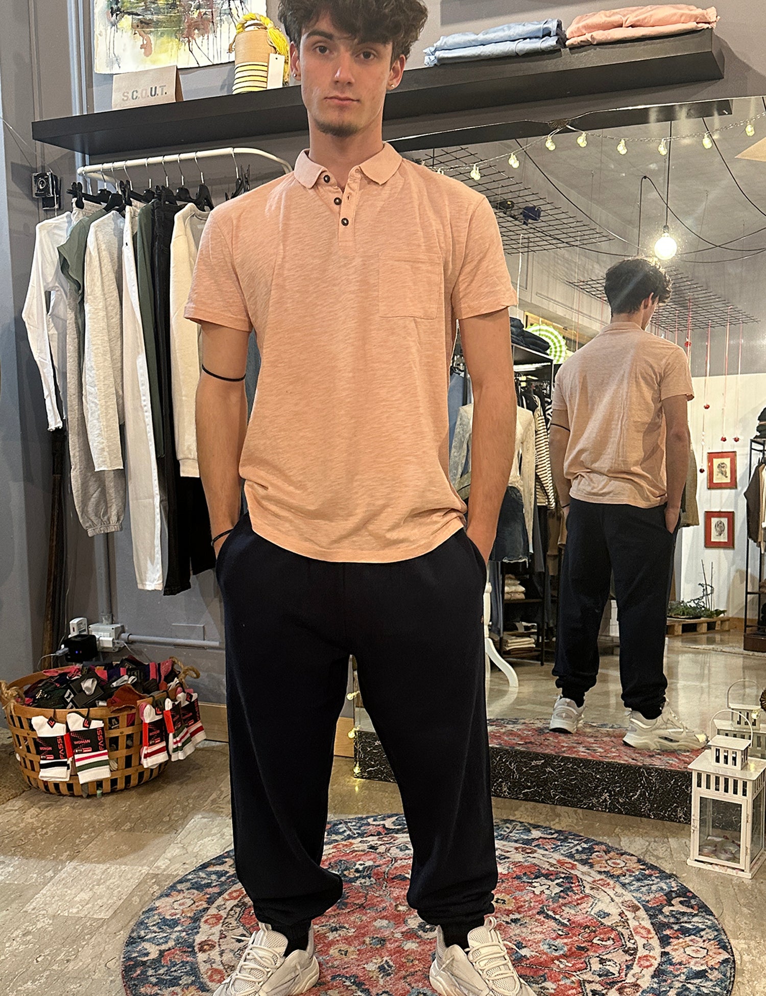 Descrizione: Pantalone tuta da uomo con tasche laterali, logo ricamato, girovita e fondo elasticizzati in 100% cotone. Interno felpato.