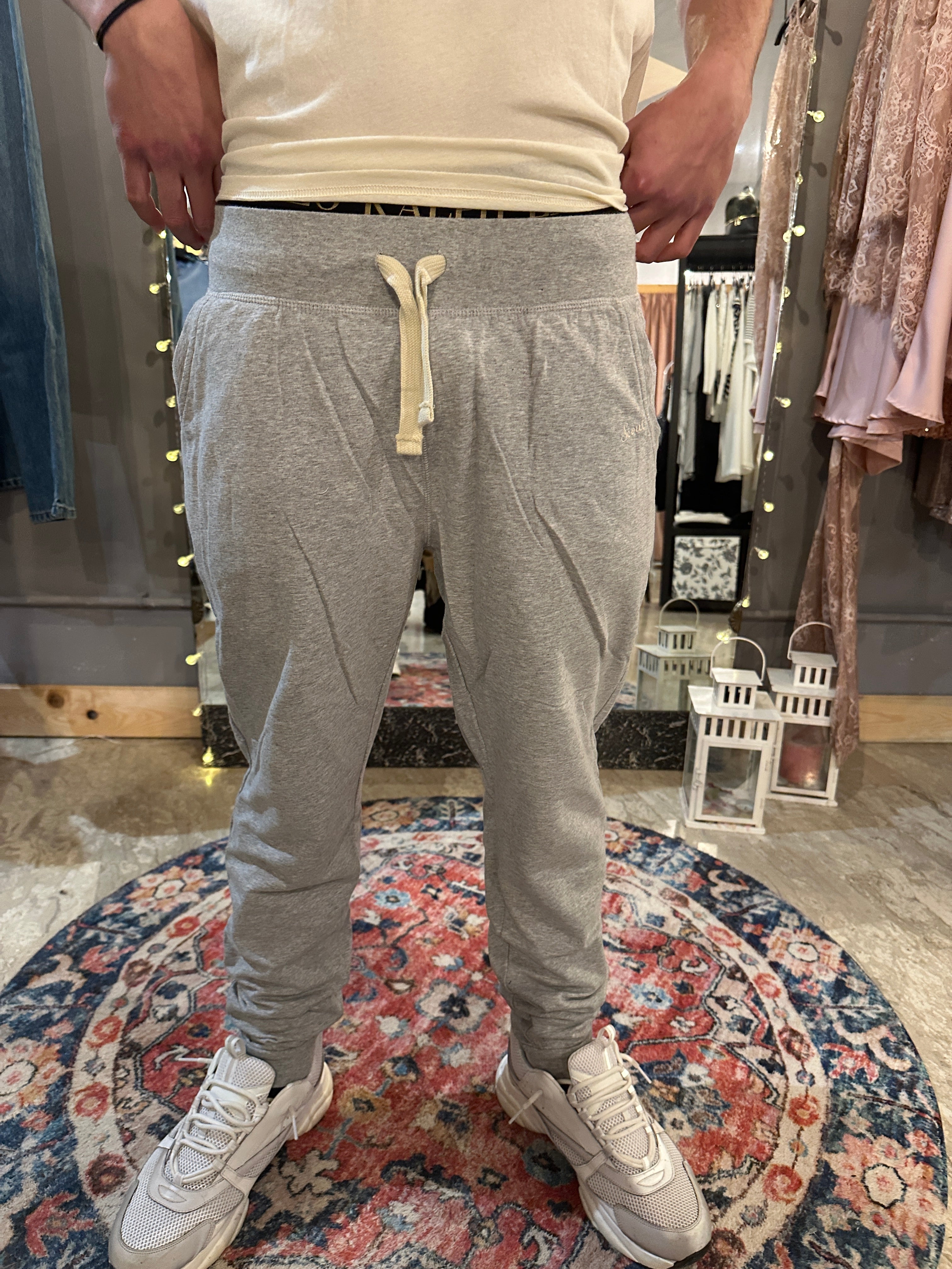 Descrizione: Pantalone tuta da uomo, realizzato con materiale stretch, tasche laterali, girovita regolabile e fondo elasticizzato. Interno non felpato.
