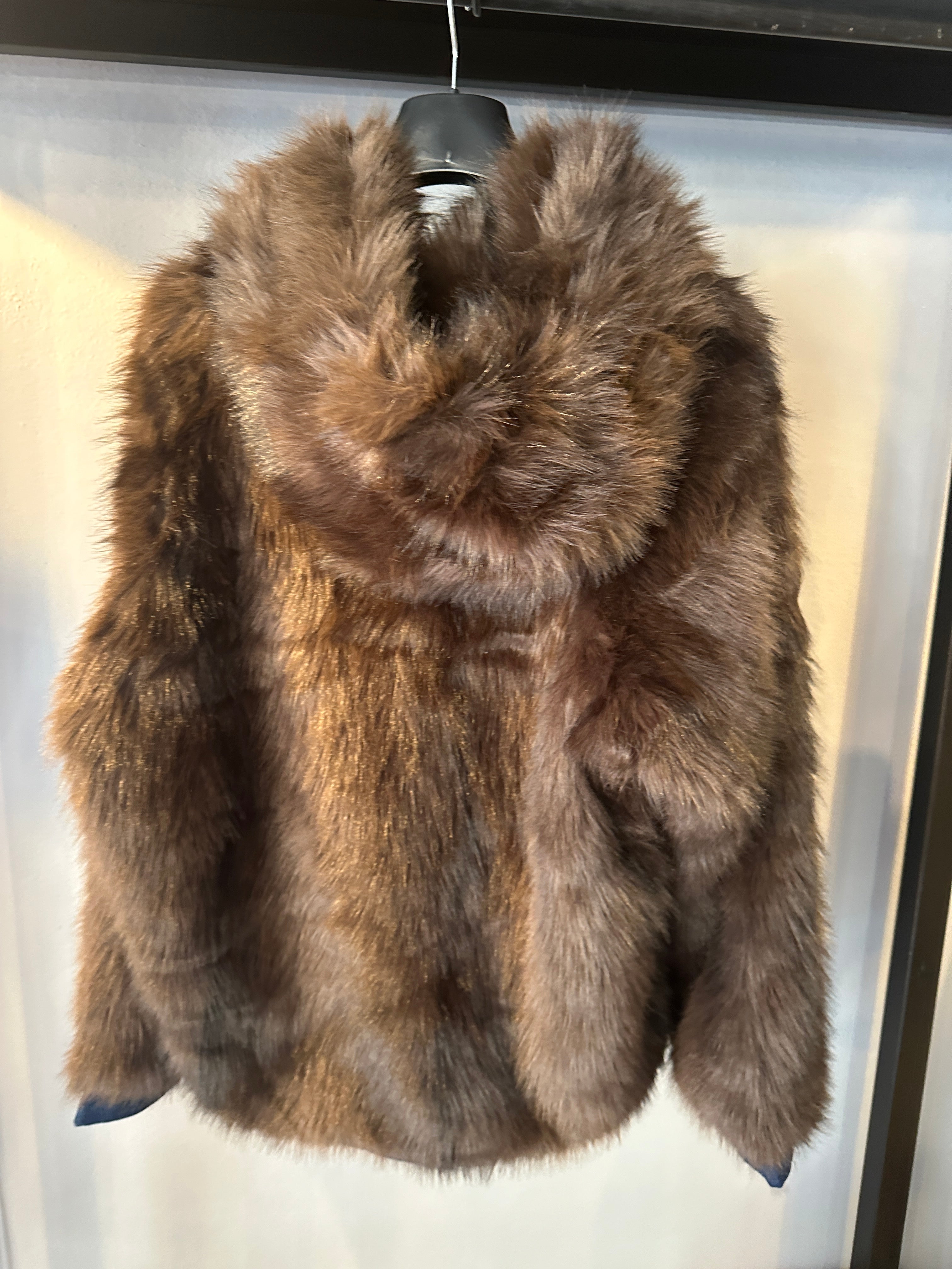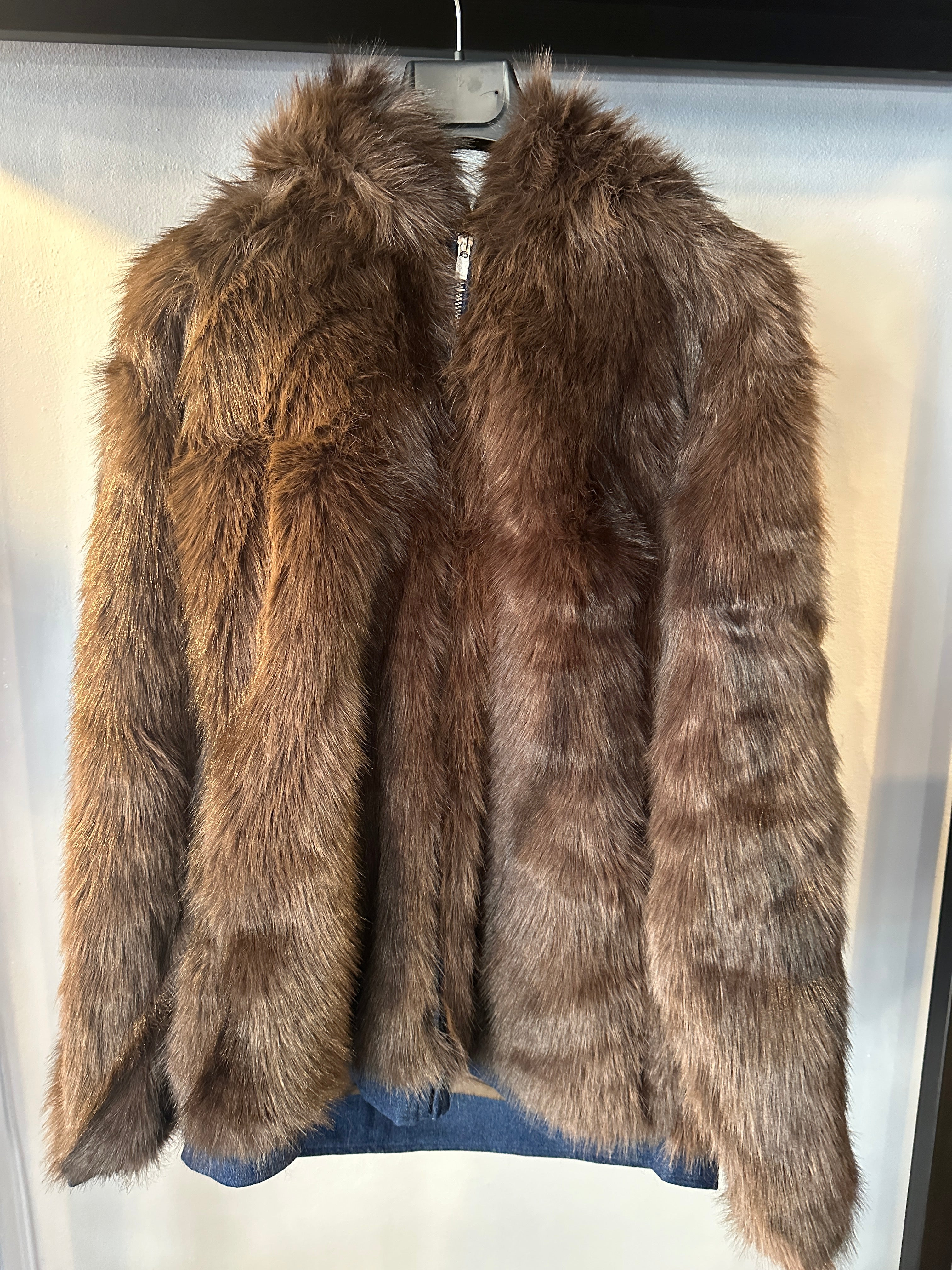 Descrizione: Pellicciotto Donna con Cappuccio. Tasche a filetto. Chiusura frontale con zip. Maniche lunghe. Rifinitura in fondo con denim