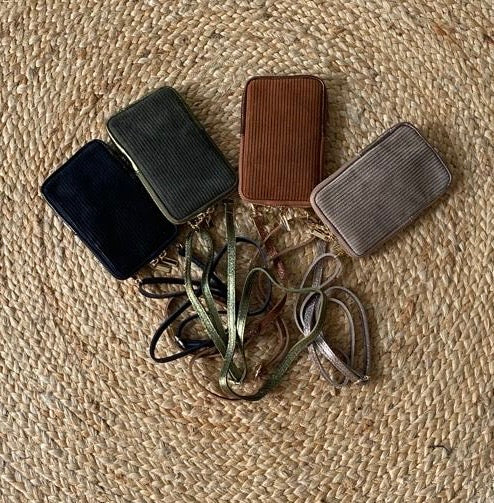 Descrizione: Portacellulare in velluto. Chiusura con zip
