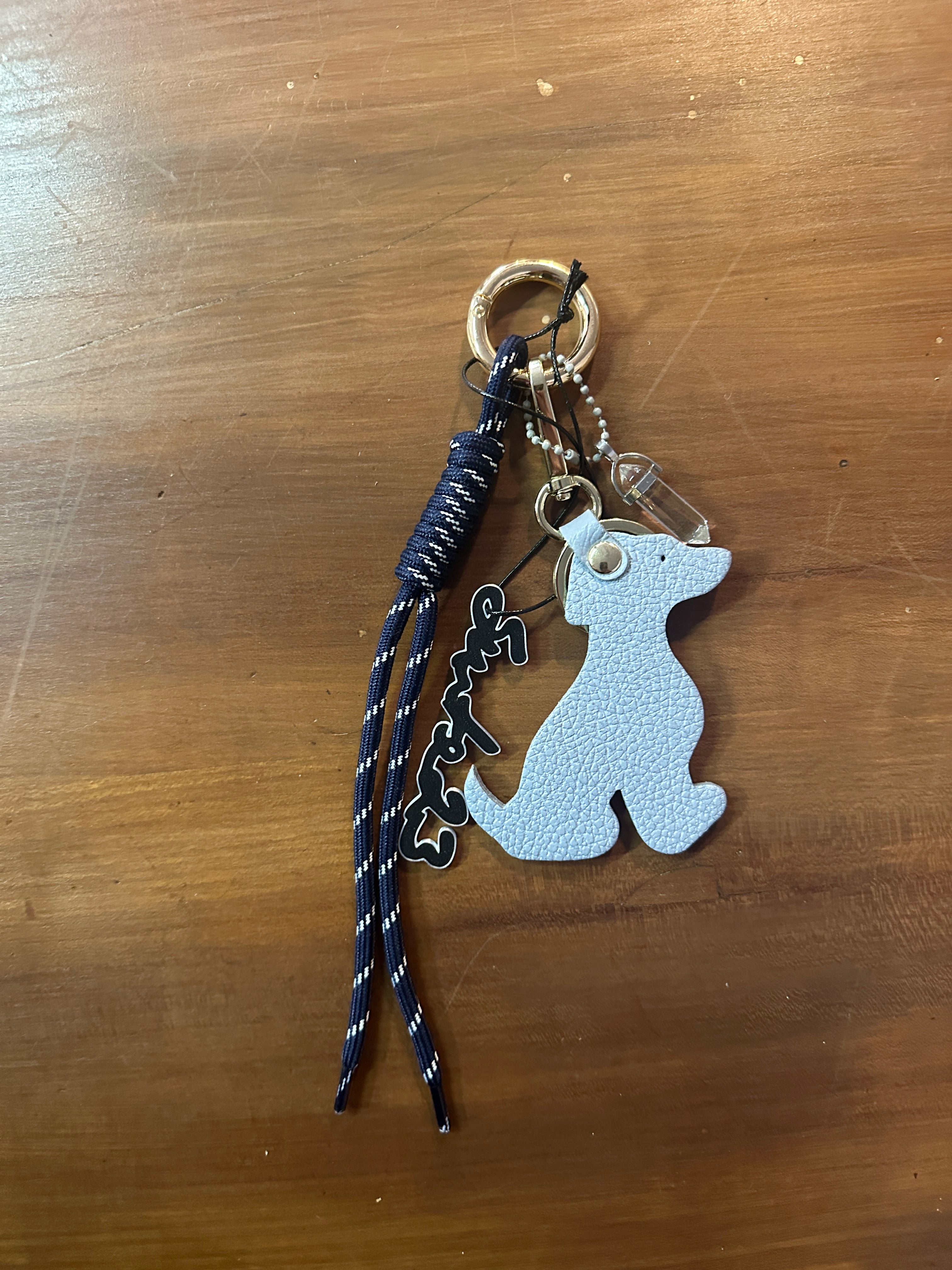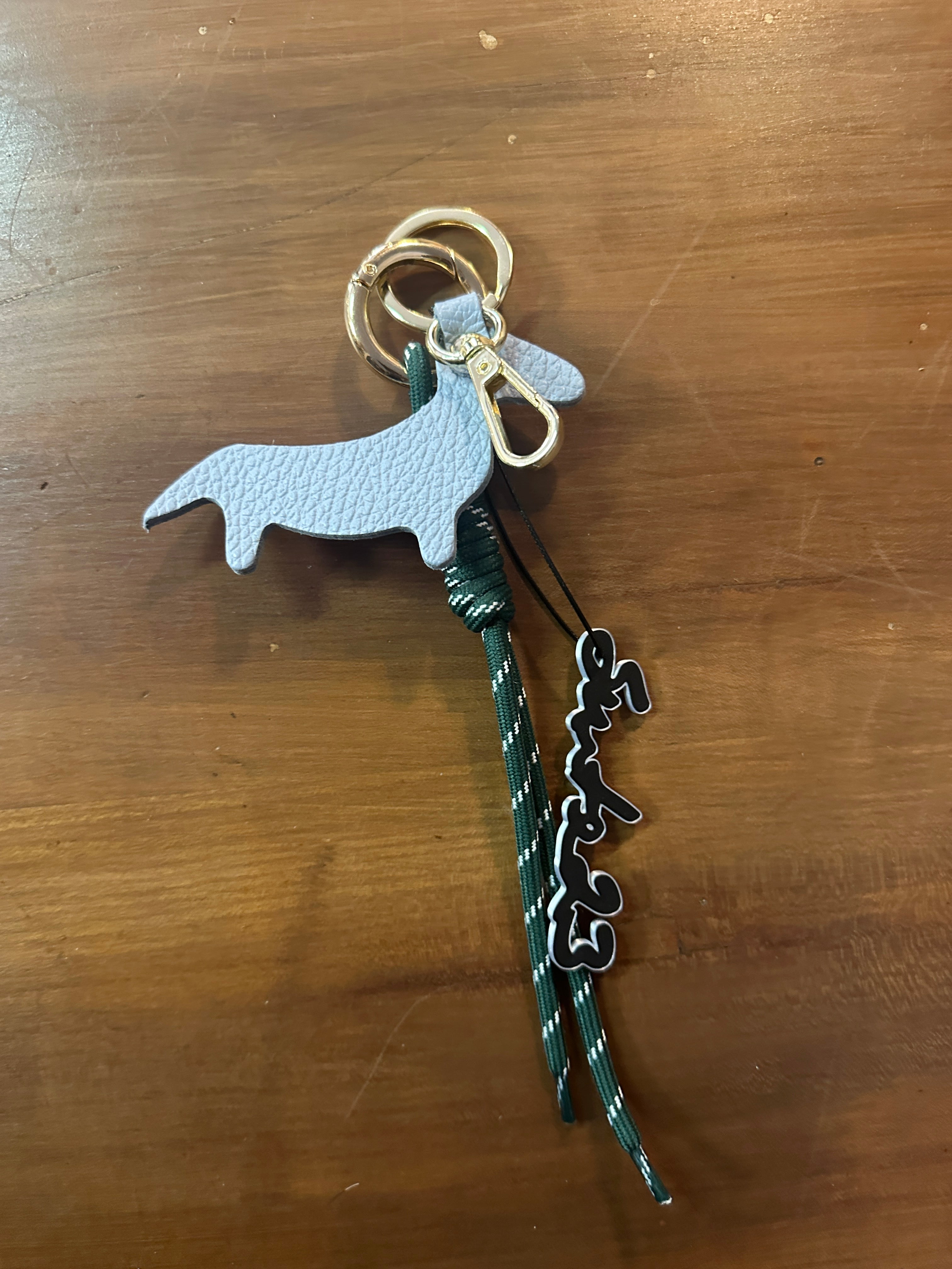 Descrizione: portachiavi in pelle e corda