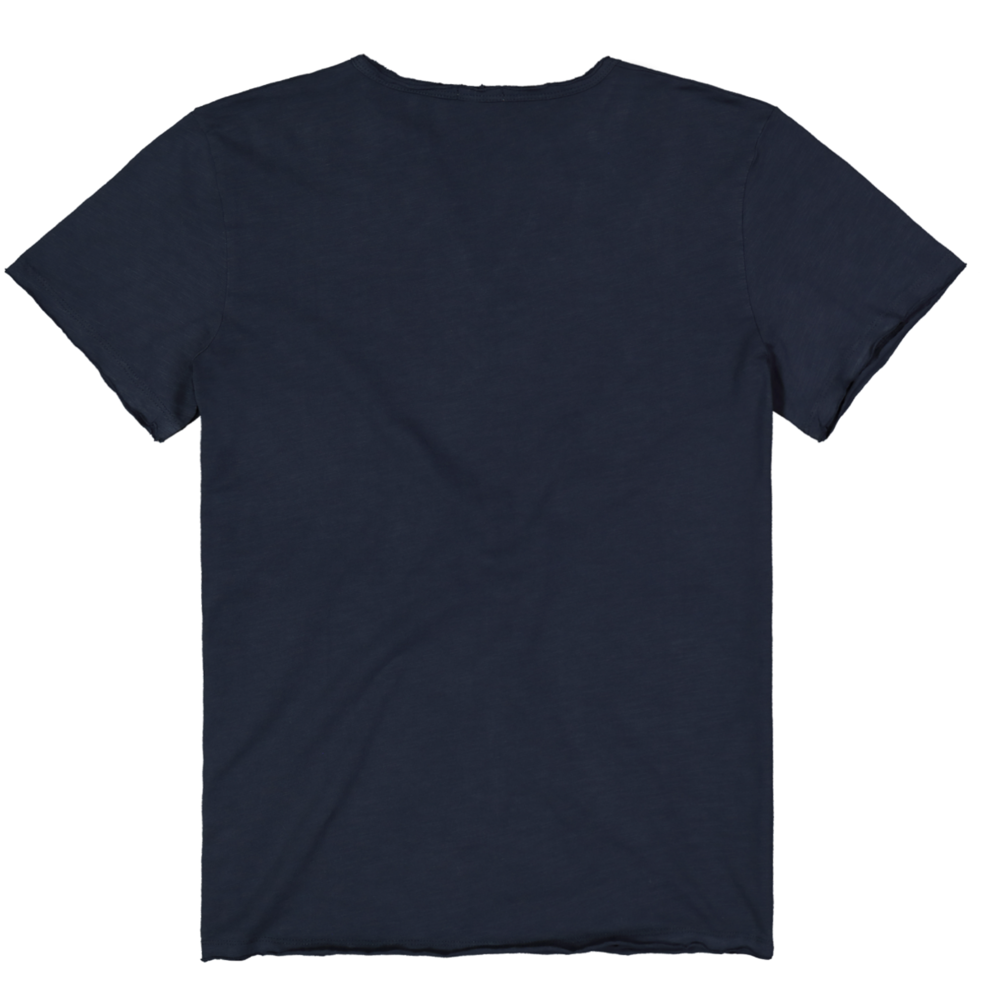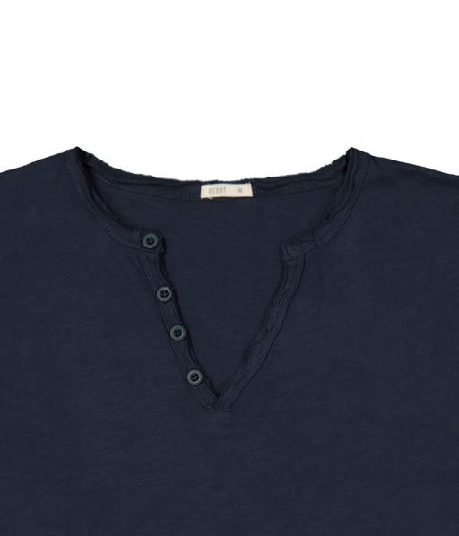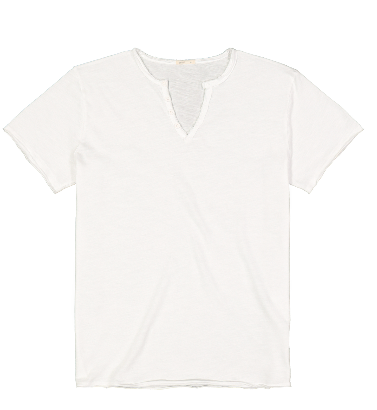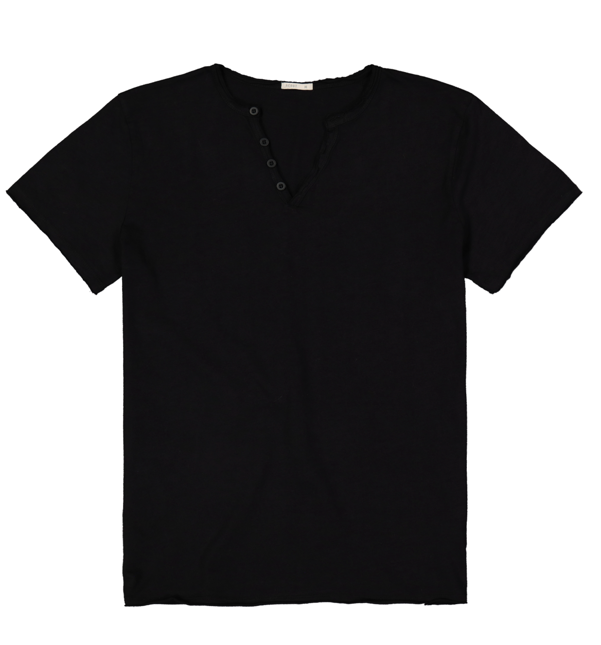 Descrizione: T-shirt a manica corta da uomo con scollo serafino e orlo a taglio vivo