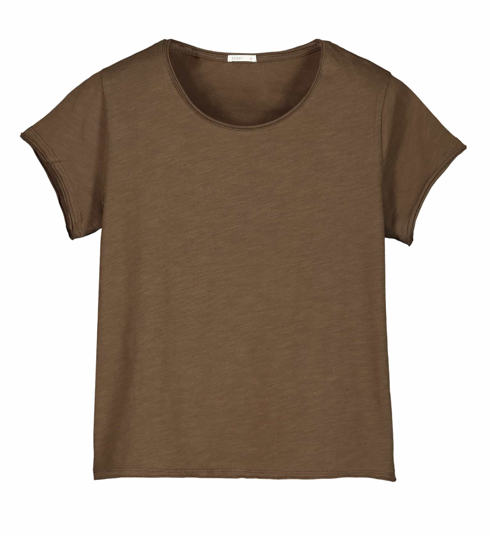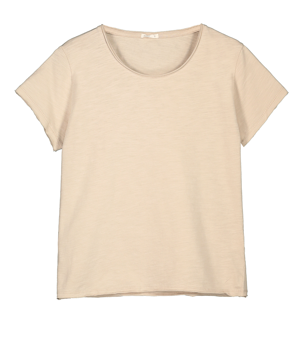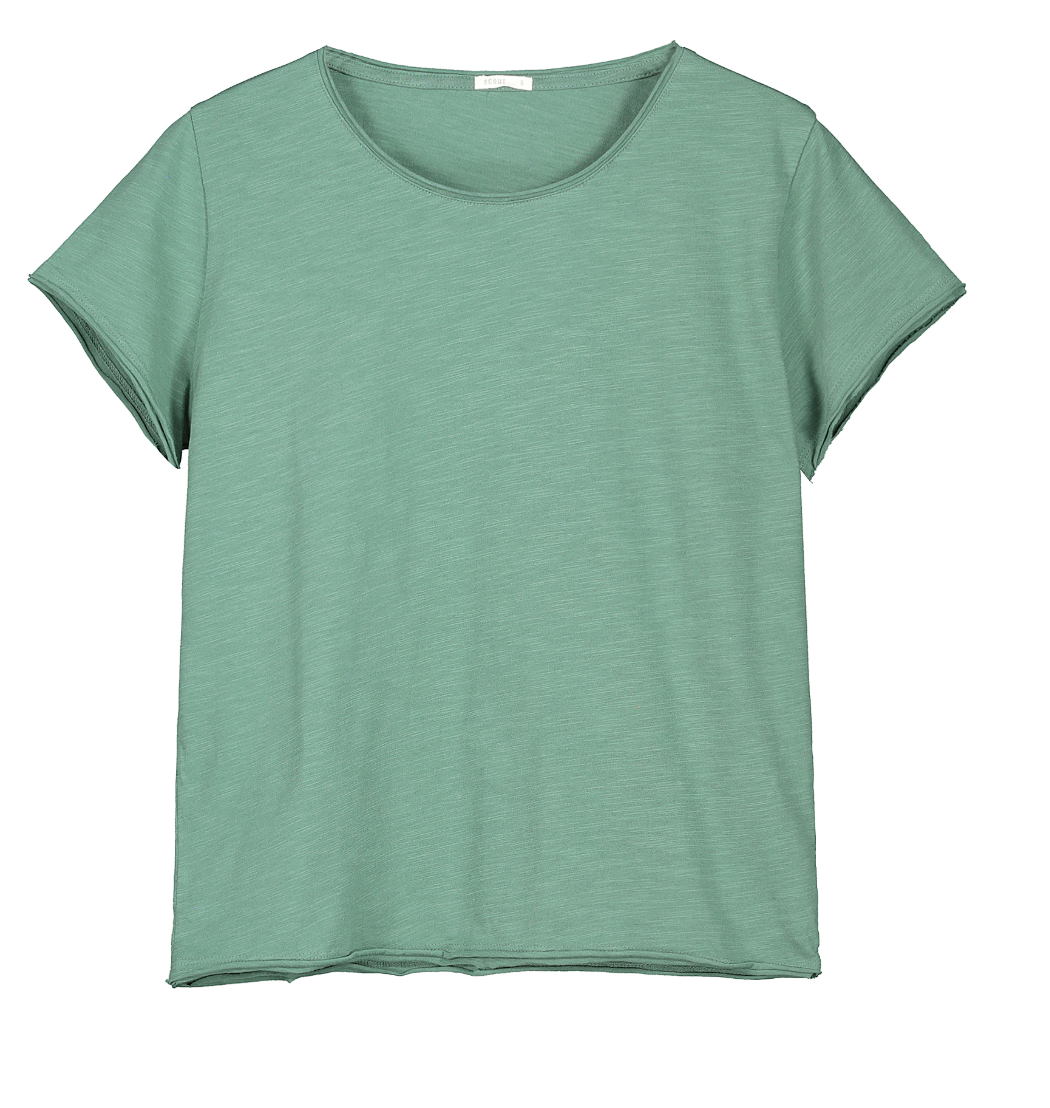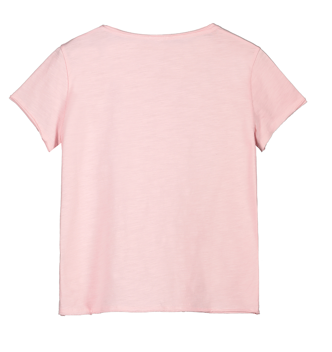 Descrizione: T-shirt donna a manica corta in tessuto Fiammato. Girocollo con orlo a taglio vivo