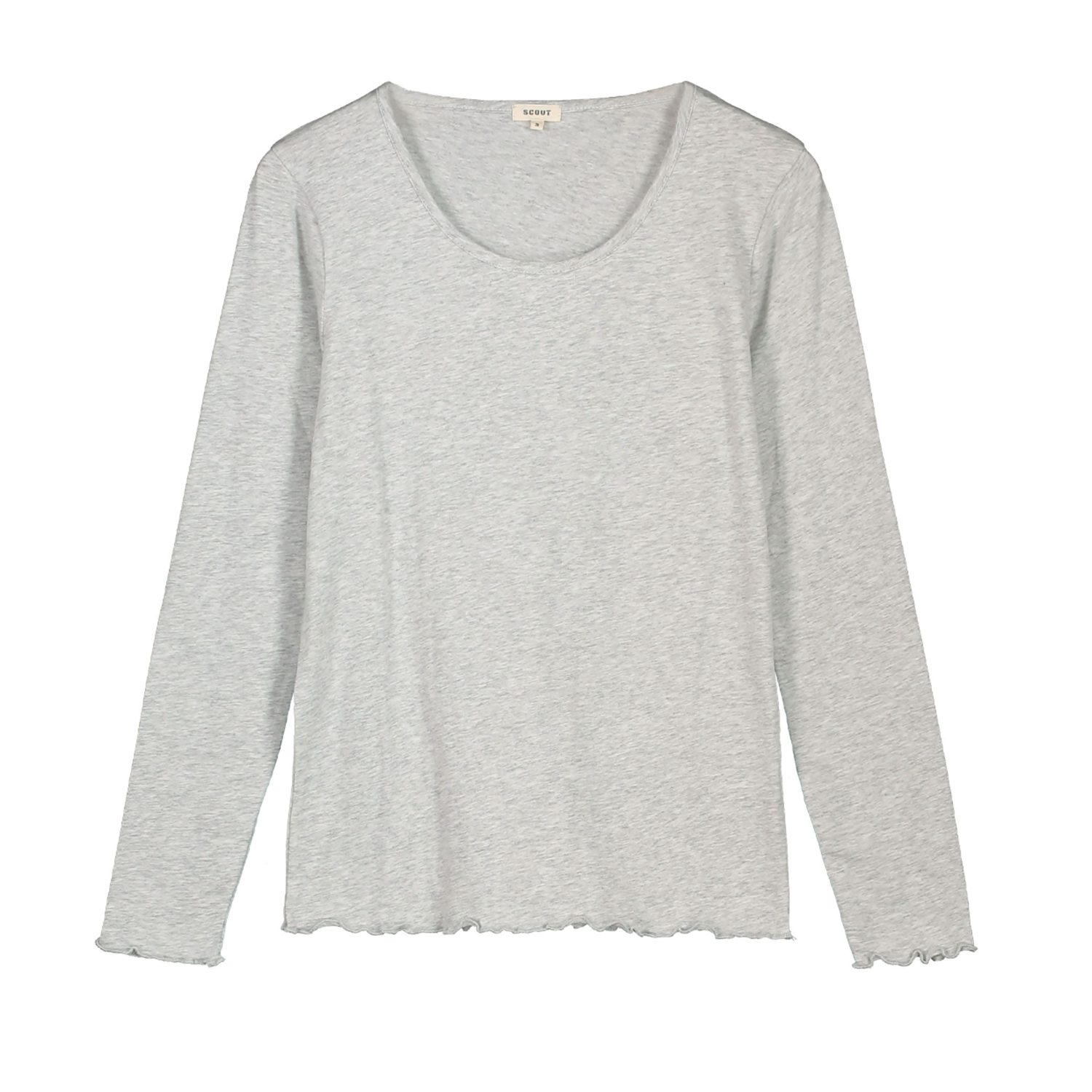Descrizione: T-shirt a manica lunga con collo a madonna. Orlo fondi a prilletta.