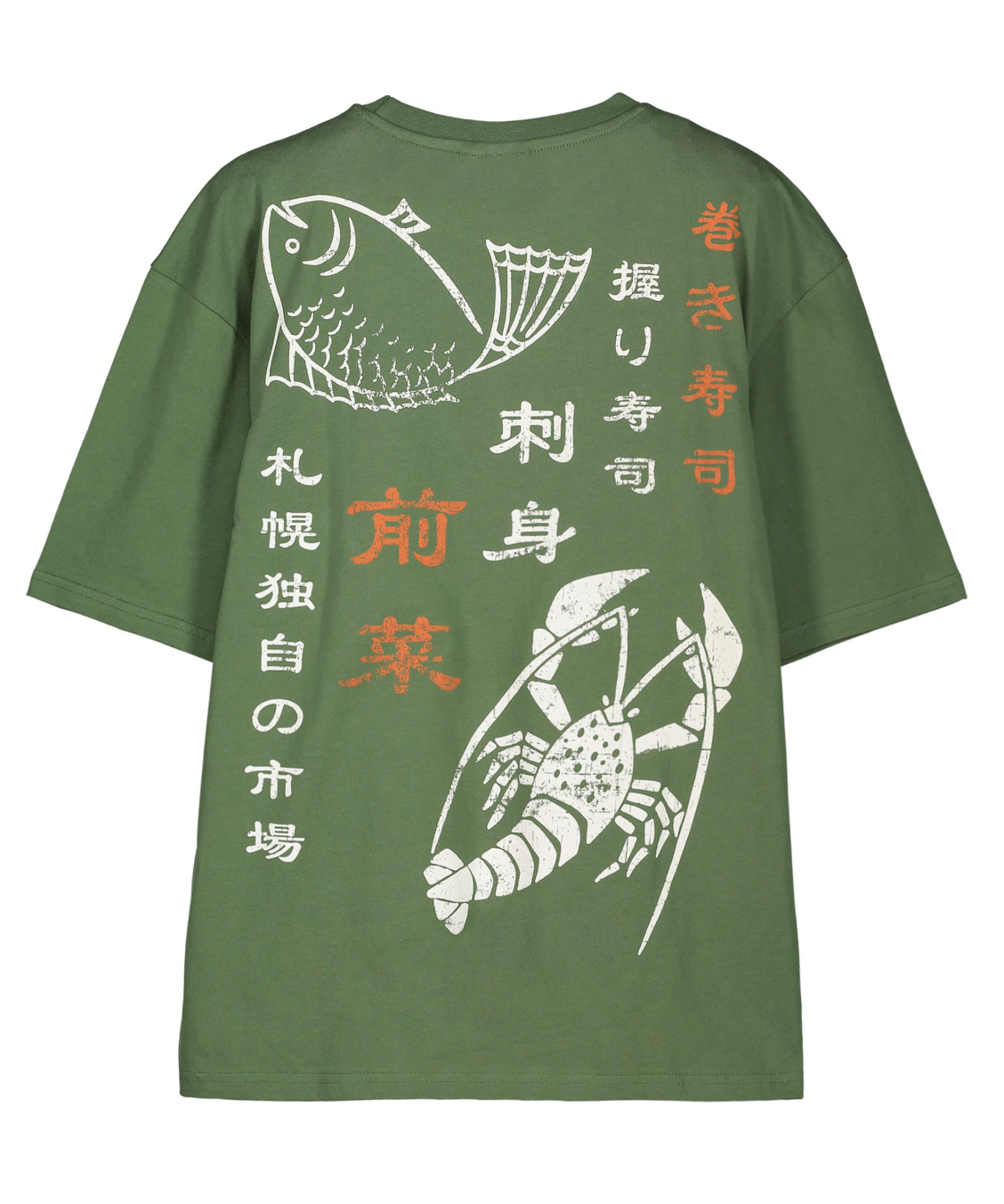 Descrizione: T-shirt uomo in jersey di cotone. Girocollo, manica corta, stampa pesci Giapponese sul petto e sul retro.