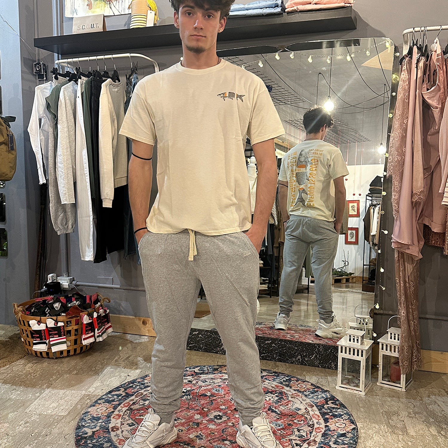 Descrizione: T-shirt uomo in jersey di cotone. Girocollo, manica corta, stampa Salmone sul petto e sul retro.