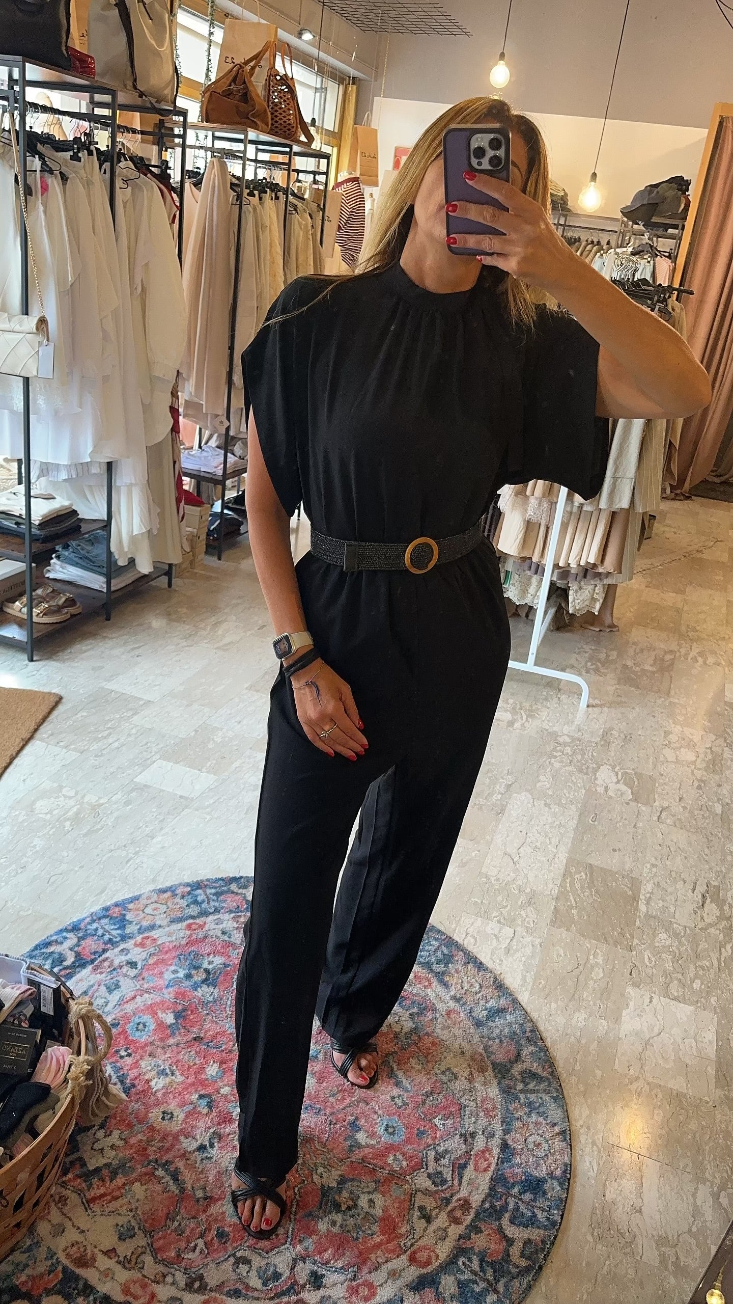 Descrizione: Tuta intera con collo alto. Apertura dietro con nastro, elastico in vita e gamba dritta